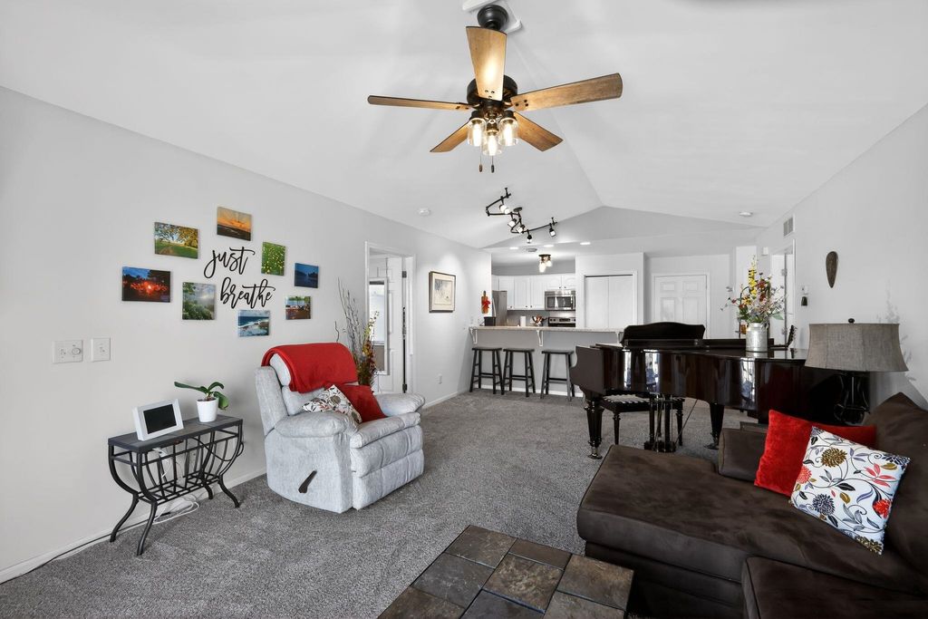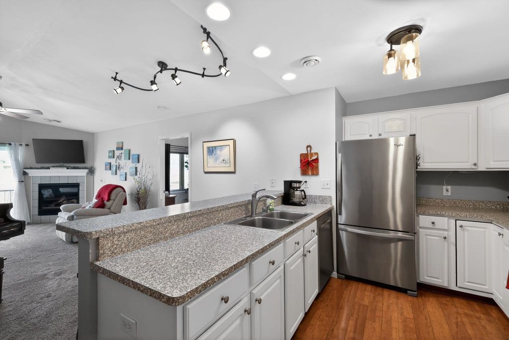 Bright, beautifully refreshed 2-bedroom, 2-bath condo offering comfort, convenience and style. Enjoy natural light throughout, highlighting the stylish updates such as newer carpeting in the living area and bedroom, updated light fixtures, patio door and bedroom window. Major exterior improvements provide peace of mind with a new roof (2024) and recently replaced deck. The attached 2-car garage adds everyday ease, while the prime location puts you withing walking distance to the athletic club, restaurants and coffee shops. A perfect blend of low-maintenance living and modern updates means you can move right in and enjoy!