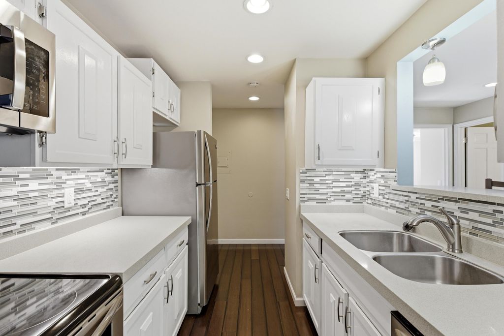 Welcome to this beautifully updated 2-bedroom, 1-bath condo in an unbeatable Middleton location. The refreshed kitchen features quartz countertops, white cabinetry and stainless steel appliances, flowing seamlessly into a bright and comfortable living space. Enjoy a quiet, private setting from your balcony that feels like you're nestled in the trees, perfect for morning coffee or evening unwinding. Ideally located directly across the street from Marshall Park on the shores of Lake Mendota, offering easy access to trails, green space and waterfront activities. Additional highlights include a private 1-car garage, ample surface parking for residents and guests and a dedicated storage unit. HOA dues cover heat and hot water, adding convenience and value to this exceptional opportunity.