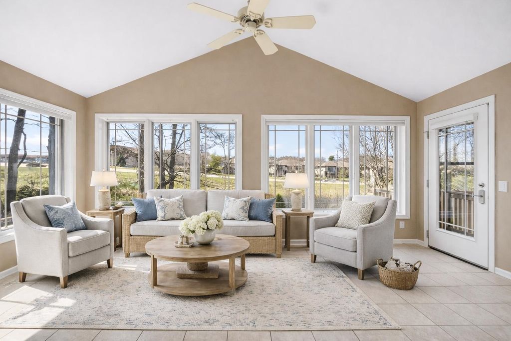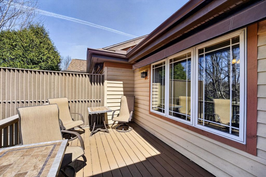 Set within a desirable communities, this ranch-style half duplex offers a refined blend of comfort, convenience, and elevated living"”perfect blend of low-maintenance lifestyle without compromise. From the moment you enter the spacious foyer, the home's thoughtful design & quality finishes are immediately apparent. Rich hardwd flring flows through much of the main level, connecting rooms in a seamless, elegant layout. Vaulted ceiling & gas FP with built-ins on either side draw your attention in the lvrm. Updated kitchen is both stylish & functional, featuring granite countertops, ss appliances, gas stove & double oven. Sunrm captures southwest exposure-bathed in natural light, offers calming views over the adjoining pond & has access to the deck. Primary suite includes vaulted ceiling, en suite & WIC. LL offers 9' ceilings, spacious fam rm with gas FP, wet bar & walkout patio. 2 bdrms with WIC's & a full bath & ample storage! Enjoy clubhouse, pool, tennis & scenic green space with pond.