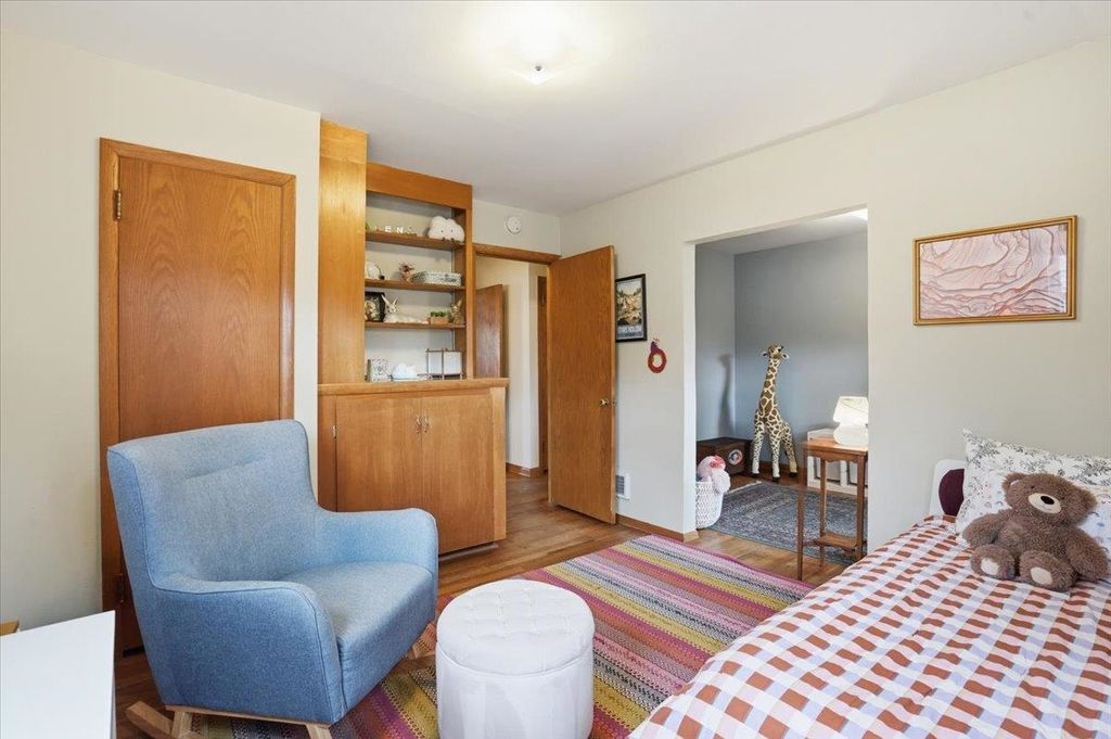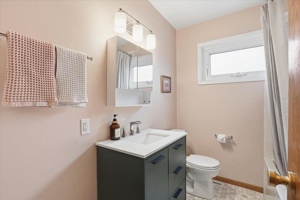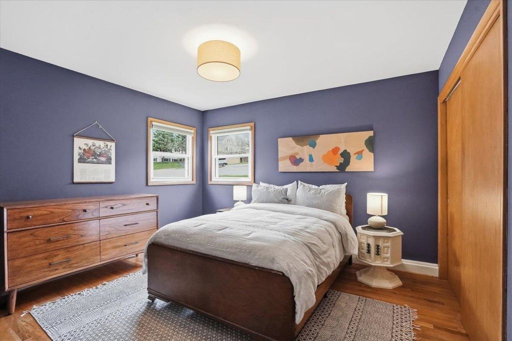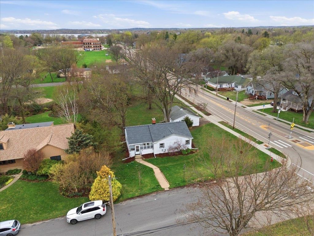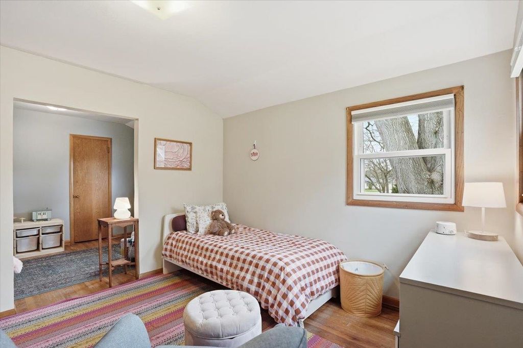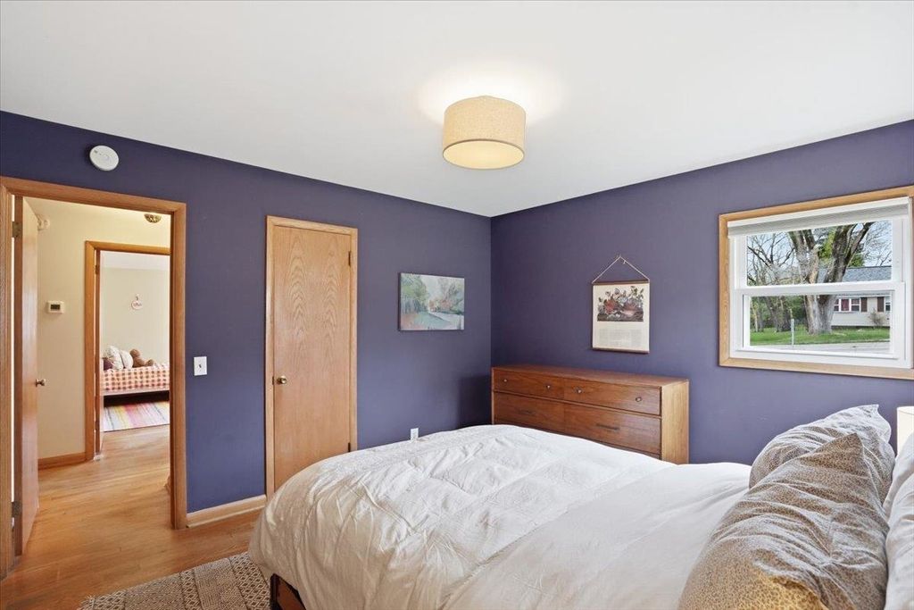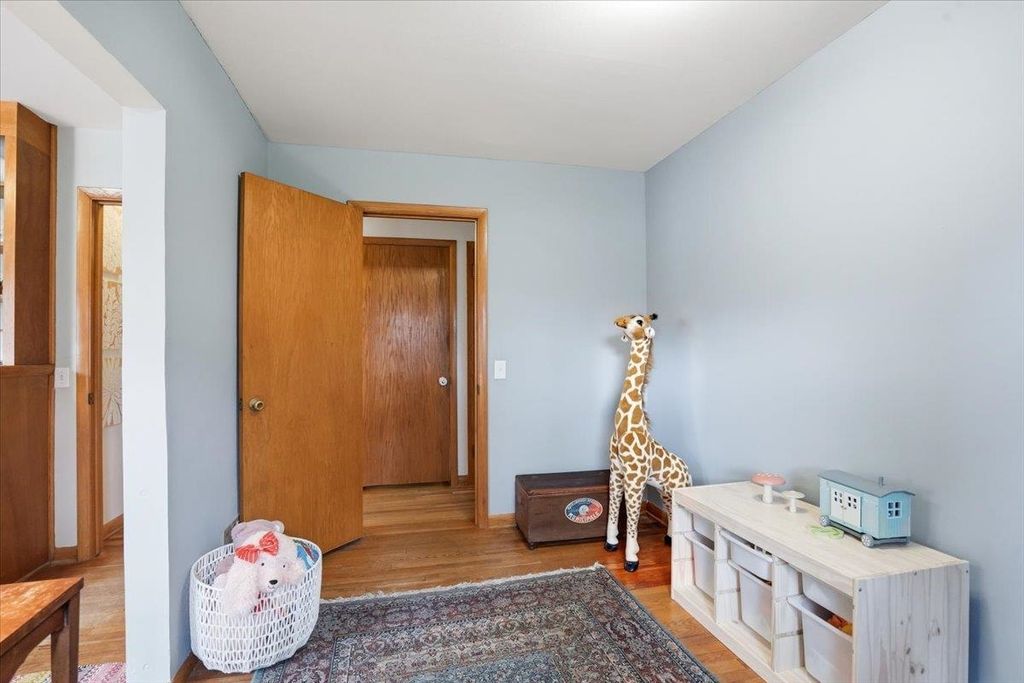 This mid-century modern has the kind of warmth and personality that instantly makes a home feel memorable. From the pink front door to the original woodwork inside, it strikes that balance of preserved character and practical updates in a way that feels hard to find. Built-ins, hardwood floors, pass-through shutters, and a standout fireplace give the main level its charm, while the kitchen brings in quartz counters, new appliances, and an open flow that works well for everyday living. Picture windows fill the home with light and overlook the backyard, the updated bath adds a fresh touch, and the finished walkout lower level gives you valuable extra space. Step outside and you'll find one of the more oversized yards in the area (almost 1/2 acres), with room to garden, plant fruit trees, keep chickens, or simply enjoy the park-like backdrop. The location is just as appealing, set directly on the Lake Loop Bike Path and near Lake Monona, Meat People, The Musky Lounge, and Crema Cafe.