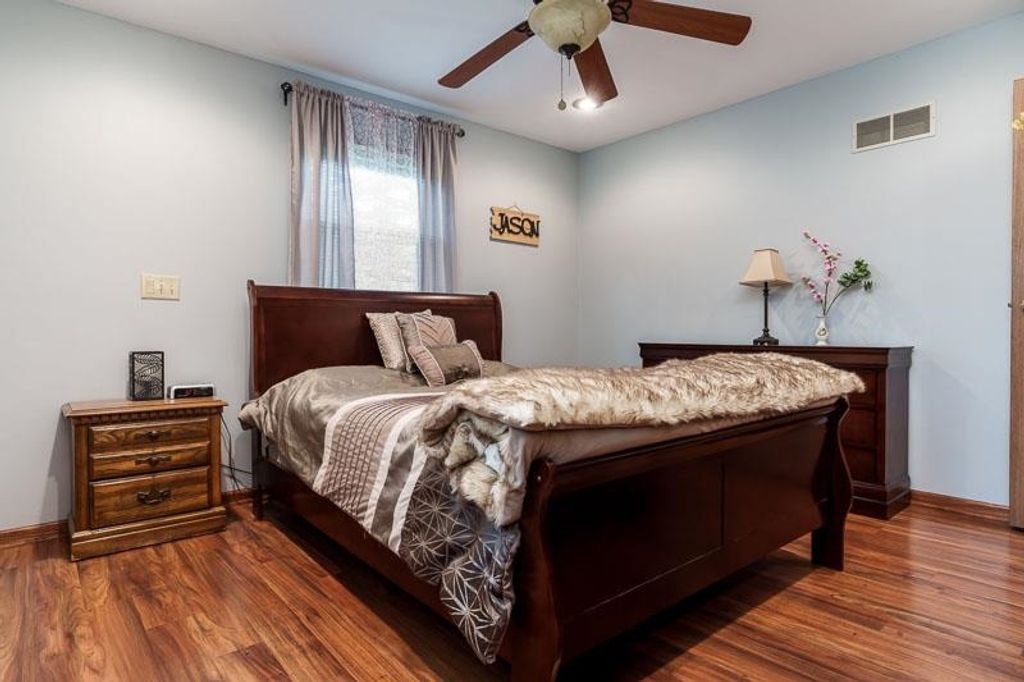 Well-maintained ranch-style home offering comfortable, easy living with thoughtful care throughout the years. This property stands out with its fenced-in yard featuring established rhubarb, berries, asparagus, and even mushrooms"”perfect for those who appreciate homegrown goodness. The kitchen features stainless appliances, solid oak KraftMaid cabinets, and a breakfast bar. Updates include newer kitchen and bathroom windows, tile flooring, storm doors, water softener, and a new patio door. Finished lower level offers a rec room with a bar and bonus room. Enjoy the convenience of single-level living paired with city sewer and a well. A great opportunity for anyone looking for a solid home with a touch of nature right outside your door. All appliances included.