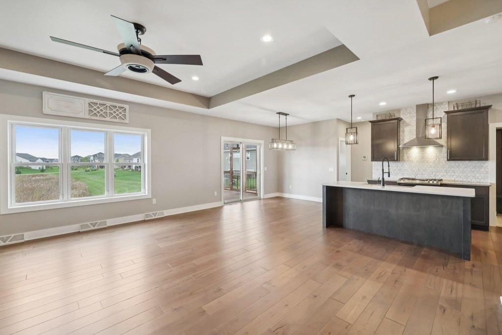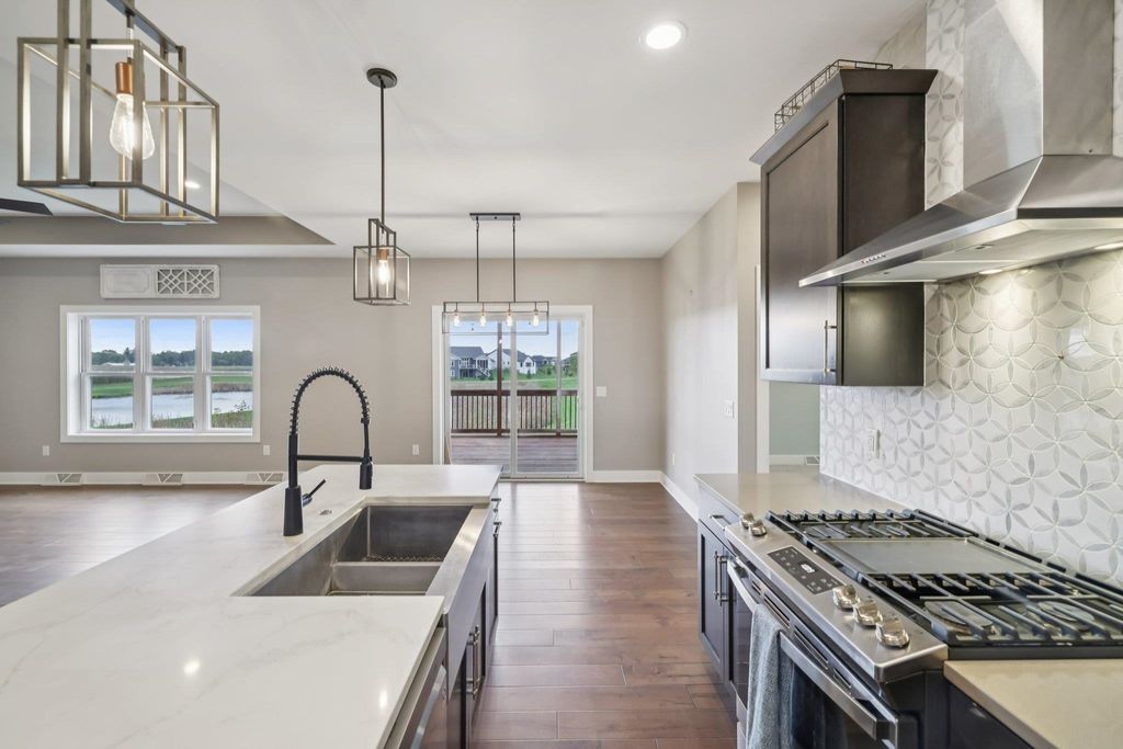 Experience elevated living in this beautifully appointed 4BR/3BA home in sought-after Nordic Ridge. Designed with sophistication in mind, the open-concept layout showcases a sun-drenched great room with rich hardwood floors, tray ceiling, and a striking fireplace centerpiece. The chef's kitchen is a showstopper, featuring quartz countertops, an expansive island, and premium stainless appliances"”ideal for effortless entertaining. Retreat to the serene primary suite offering a spa-inspired bath with tiled shower, dual vanities, and a spacious walk-in closet. The finished lower level is built for entertaining, complete with a large rec room, flex space, two additional bedrooms, full bath, and a stunning wet bar with island. Perfectly positioned near the neighborhood splash pad, this home blends upscale finishes with a vibrant community setting. A must-see for those seeking style, comfort, and distinction.
