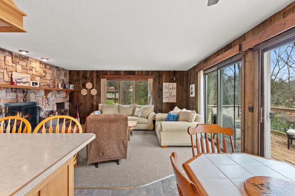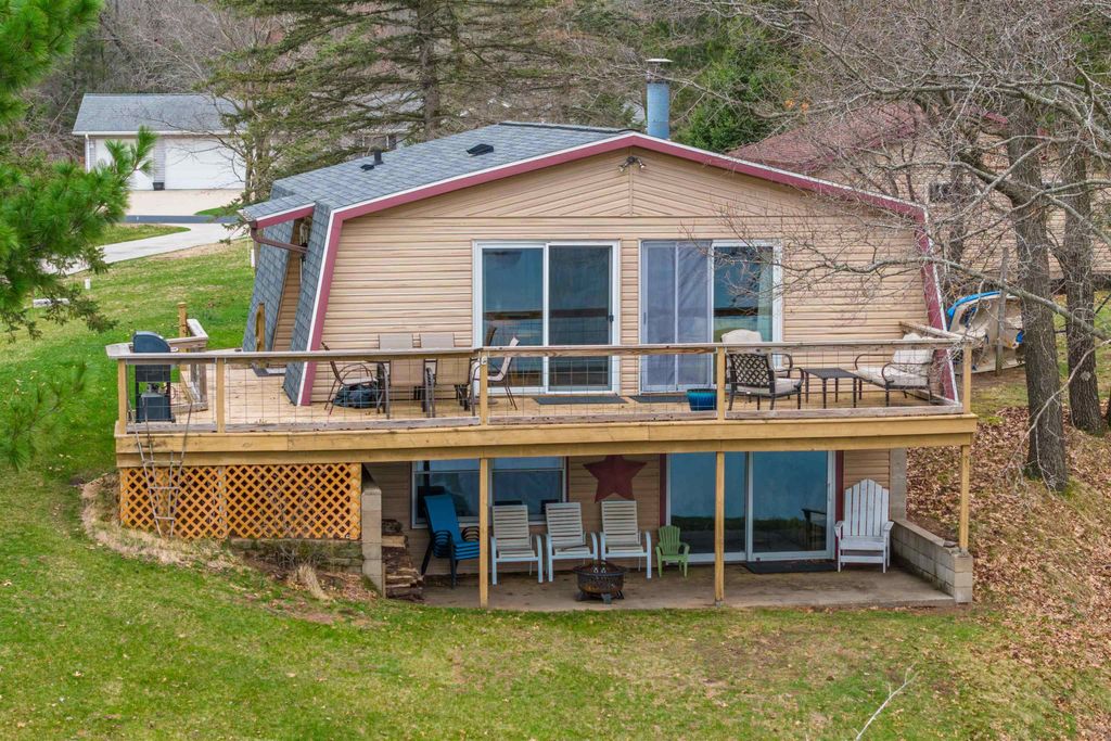 Enjoy 158 feet of rip-rap shoreline on Lake Sherwood, perfectly positioned for stunning sunset views. This 3-bedroom, 2-bath home features a finished walk-out basement with a patio, plus additional lower-level office space"”ideal for work or guests. The open-concept main level showcases a cabinet-filled kitchen, cathedral ceilings, and a striking wood-and-stone fireplace. Step outside to a spacious wraparound deck designed to capture the lake views. 2020 House Roof, Brand New Furnace and 2-stall garage completes the package. Located in the Town of Rome, you'll enjoy access to four lakes, world-class golf at Sand Valley Golf Resort, 36 holes at Lake Arrowhead Golf Courses, plus nearby hiking, biking, dining, shopping, and more.