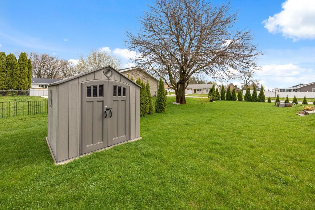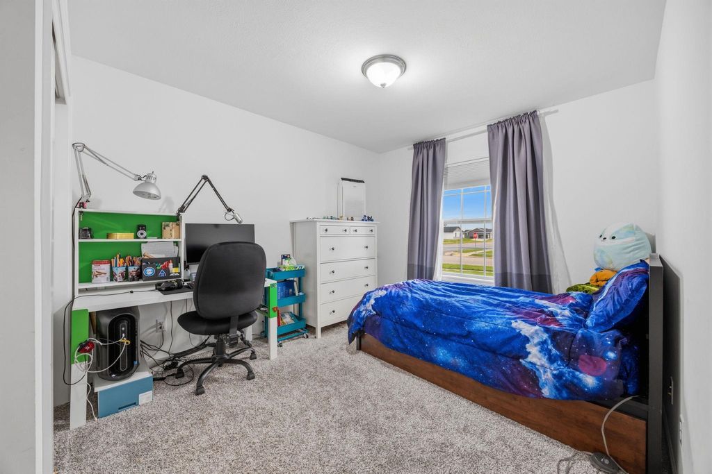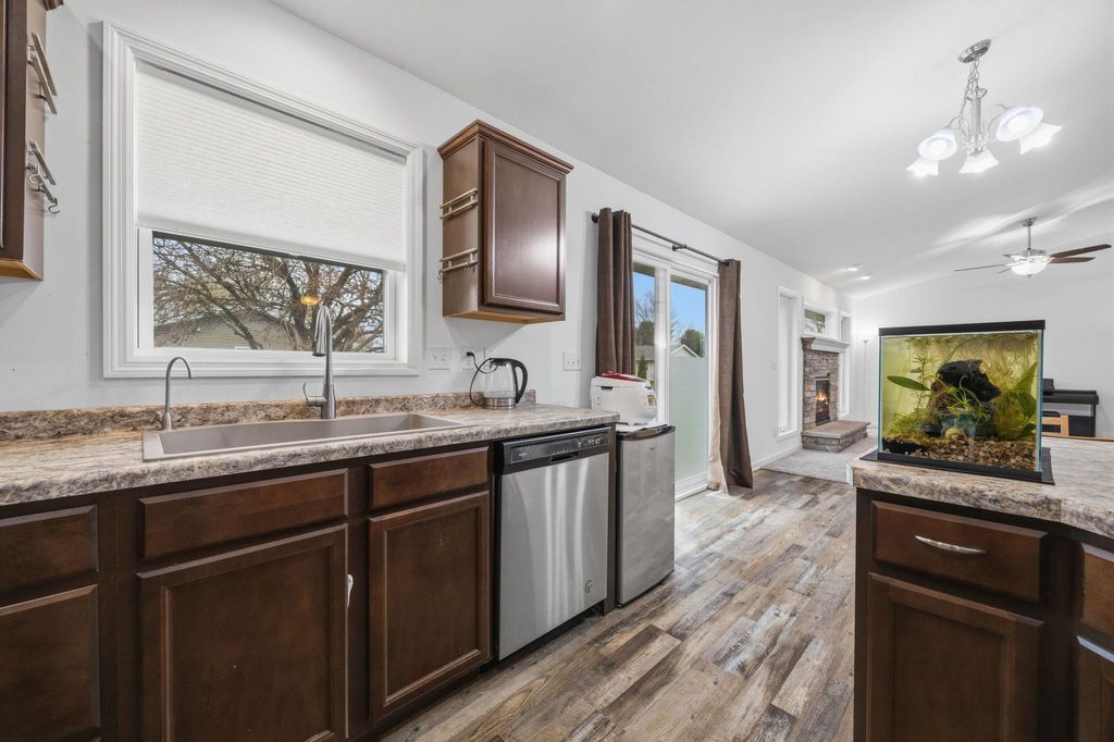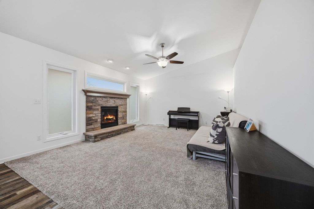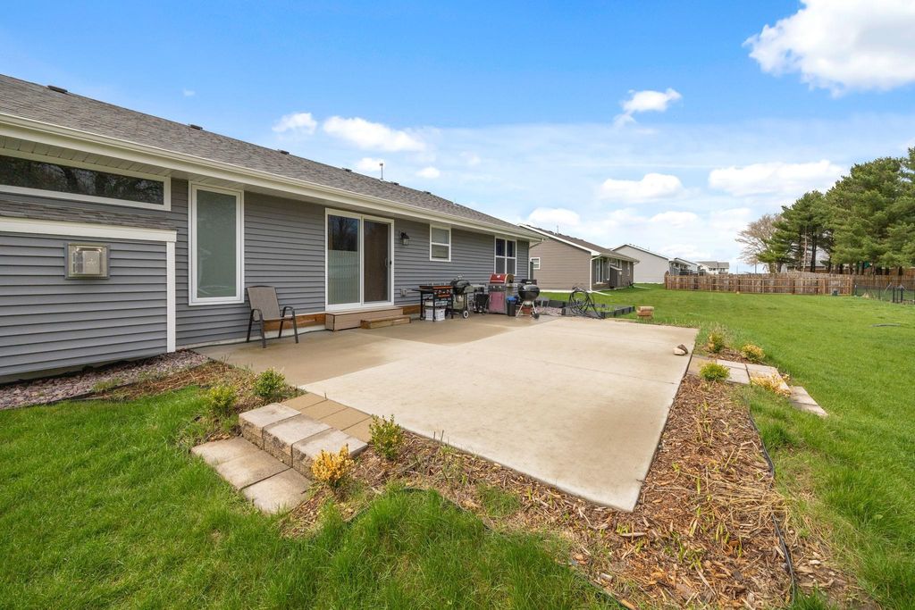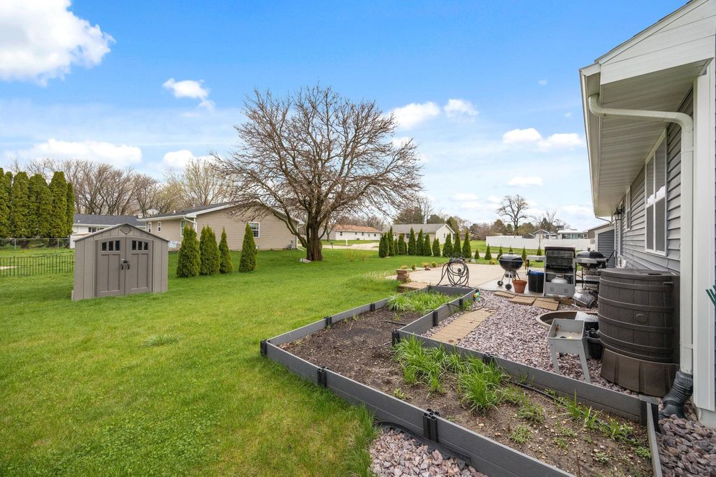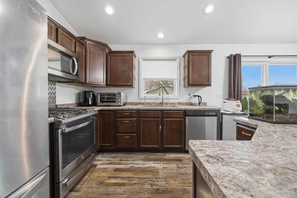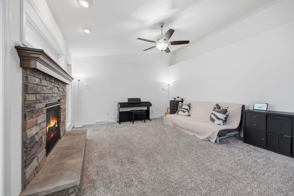 Bright, open-concept 4-bedroom, 3-bath home in desirable Red Hawk Farms on a spacious corner lot. Offering 2,480 sq ft of finished living space, this split bedroom home features vaulted ceilings, a cozy gas fireplace, and a beautifully finished basement. The kitchen includes stainless steel appliances, a breakfast bar, and ample space for entertaining. Enjoy modern conveniences with a smart thermostat, smart doorbell, smart light switches, and reverse osmosis water filtration system. The attached 3-car garage provides plenty of storage. Step outside to a nicely landscaped yard with beautiful curb appeal. The backyard is complete with a patio, large storage shed, rain barrel, drip irrigation system, garden space, and fire pit"”perfect for relaxing or hosting guests. Conveniently located near parks, schools, shopping, and more, this move-in ready home offers comfort, style, and functionality in one of the area's most sought-after neighborhoods.