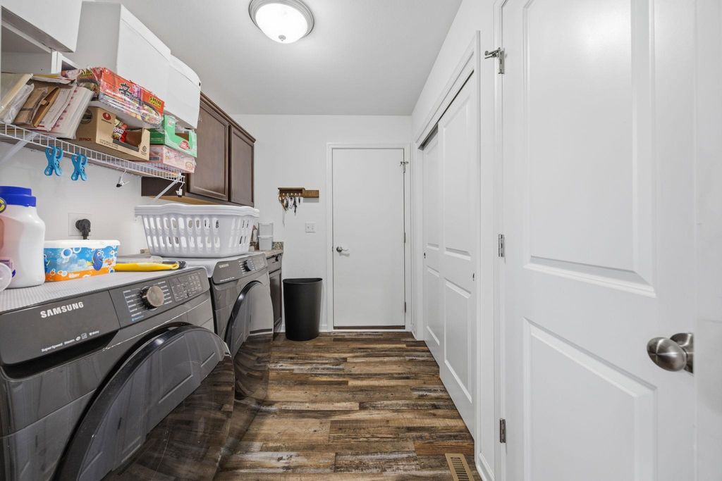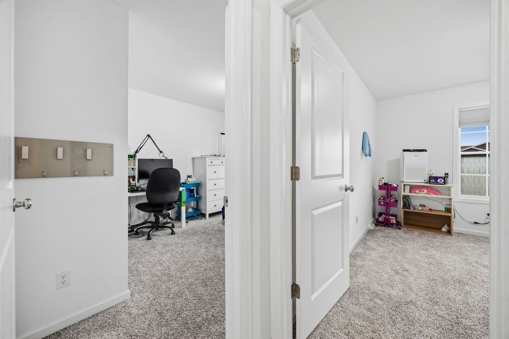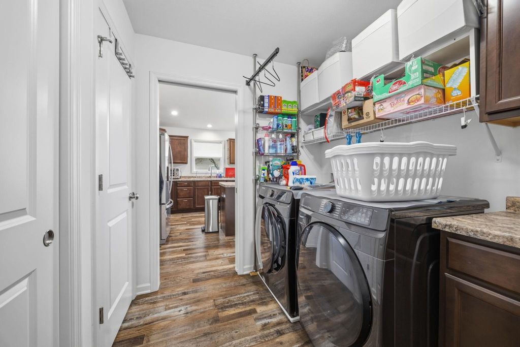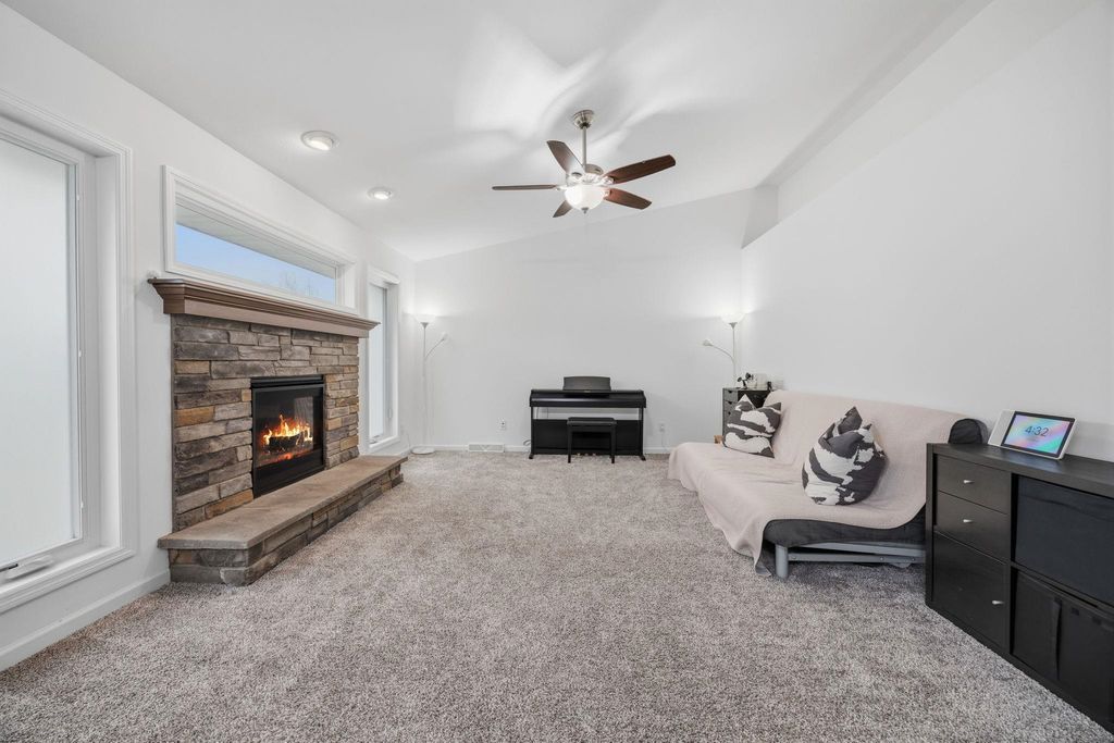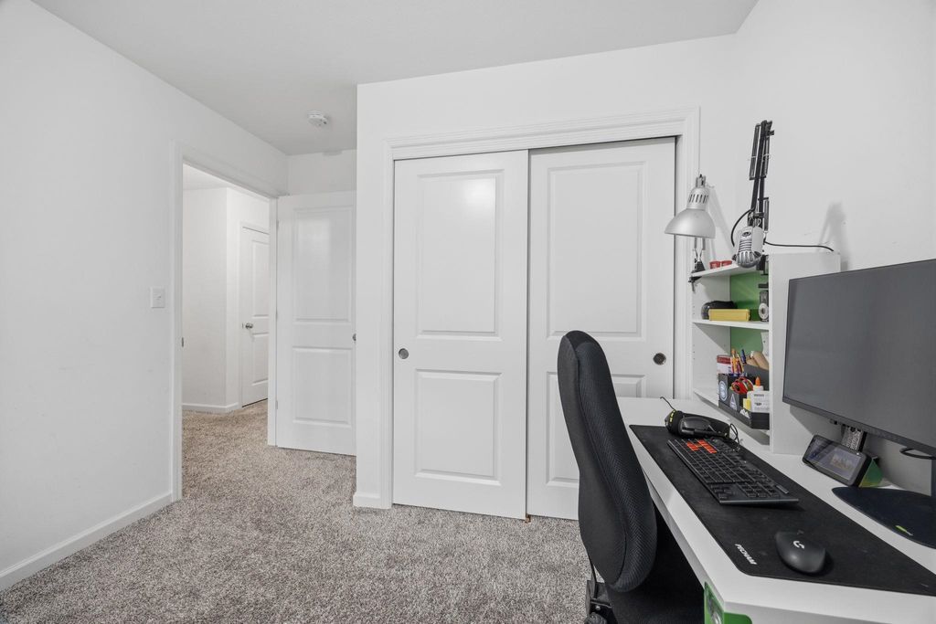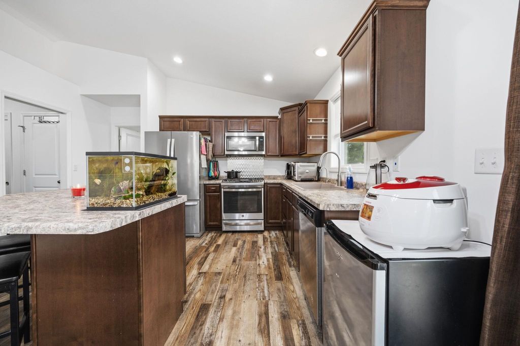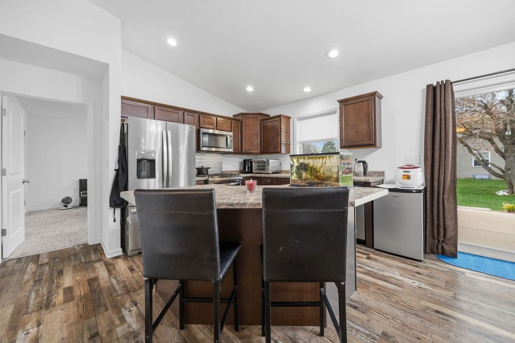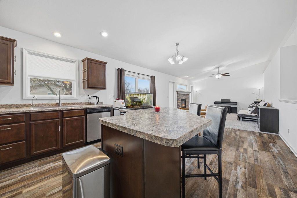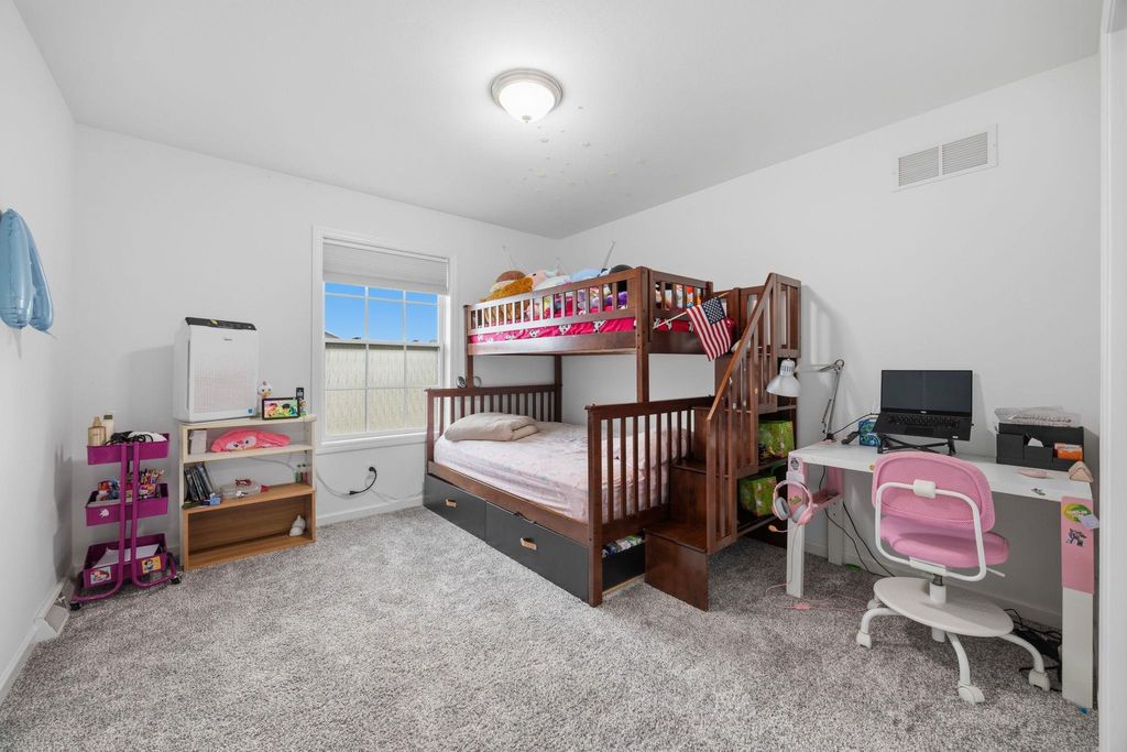 Bright, open-concept 4-bedroom, 3-bath home in desirable Red Hawk Farms on a spacious corner lot. Offering 2,480 sq ft of finished living space, this split bedroom home features vaulted ceilings, a cozy gas fireplace, and a beautifully finished basement. The kitchen includes stainless steel appliances, a breakfast bar, and ample space for entertaining. Enjoy modern conveniences with a smart thermostat, smart doorbell, smart light switches, and reverse osmosis water filtration system. The attached 3-car garage provides plenty of storage. Step outside to a nicely landscaped yard with beautiful curb appeal. The backyard is complete with a patio, large storage shed, rain barrel, drip irrigation system, garden space, and fire pit"”perfect for relaxing or hosting guests. Conveniently located near parks, schools, shopping, and more, this move-in ready home offers comfort, style, and functionality in one of the area's most sought-after neighborhoods.