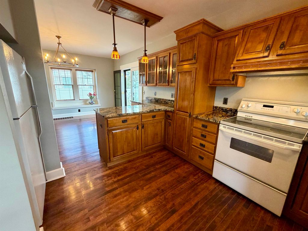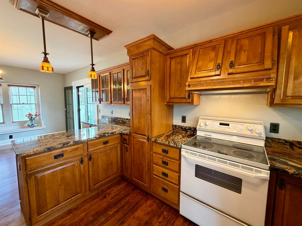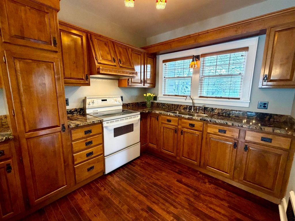 Meticulously restored 3-bedroom Cape Cod just a short walk to downtown, blending timeless charm with thoughtful modern updates. Pride of ownership is evident throughout this warm and inviting home. Original details add character at every turn, including graceful archways, tall baseboards, built-ins, benches, and cupboards, along with gleaming refinished hardwood floors, vintage light fixtures, and classic push-button switch plates. The living room offers a comfortable gathering space, centered around a gas fireplace with refurbished wood surround, leaded glass doors and windows, and fully rebuilt stone chimney stack. Both the kitchen and bath have been fully remodeled, with the kitchen offering granite countertops and quality cabinetry, and the bath featuring enameled cast iron tub, period tilework, and pedestal vanity. French doors provide access to a composite deck and fenced yard. Close to schools and parks. Additional information sheet included