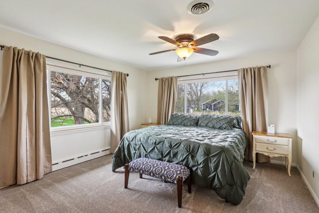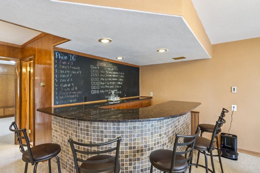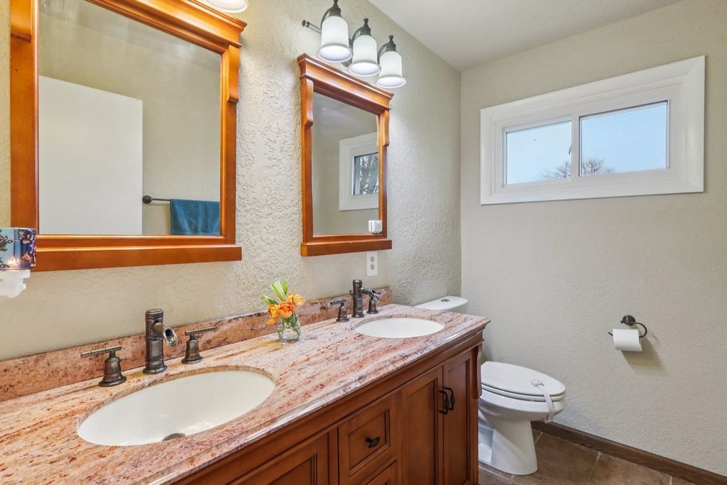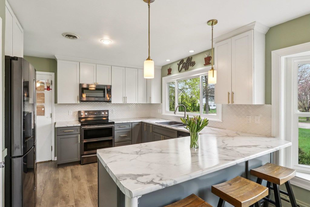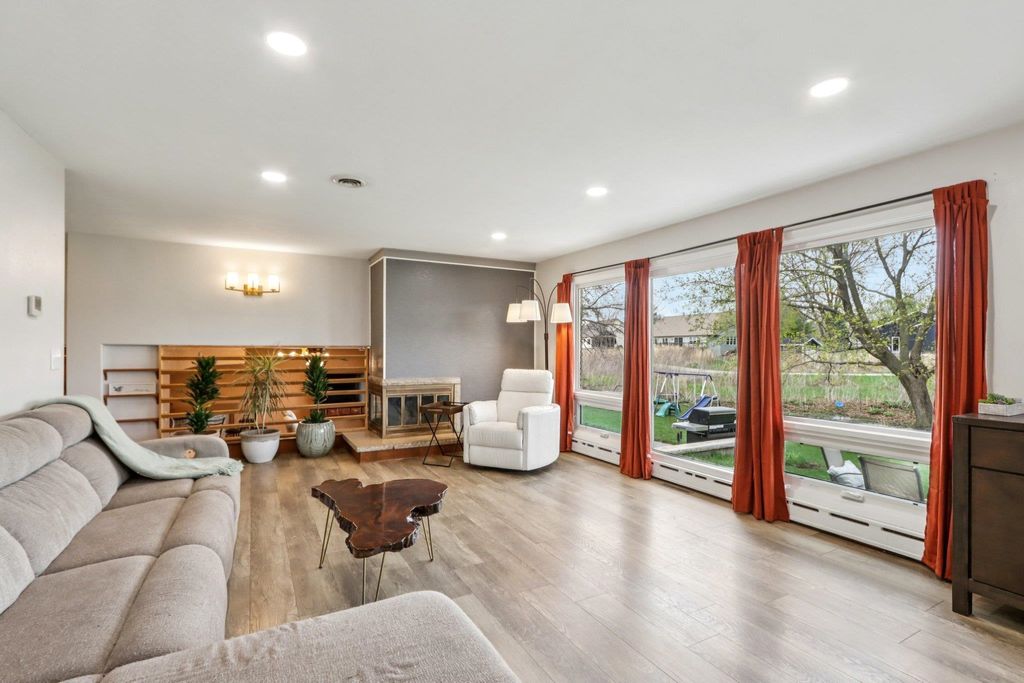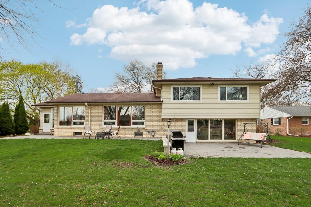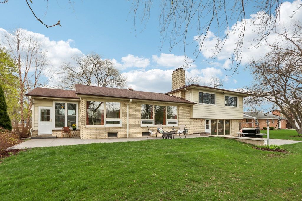 Sprawling home on the old Jefferson Golf Course, now a prairie with a great walking path to the park. Plenty of room to spread out in this home. 3 living areas, 3 season room, bedrooms on different levels, walk out lower level with huge patio. Completely remodeled kitchen with new cabinets, counters, sink, faucet, appliances. New carpet, terrazzo floors, ceramic tile. Newer bath remodels. Most new windows, new AC. Primary bedroom en suite with double sinks and a jetted tub. 2 natural fireplaces. Huge laundry/mud room. Spacious (almost 1/3 acre) yard. Don't miss out on this lovely property!