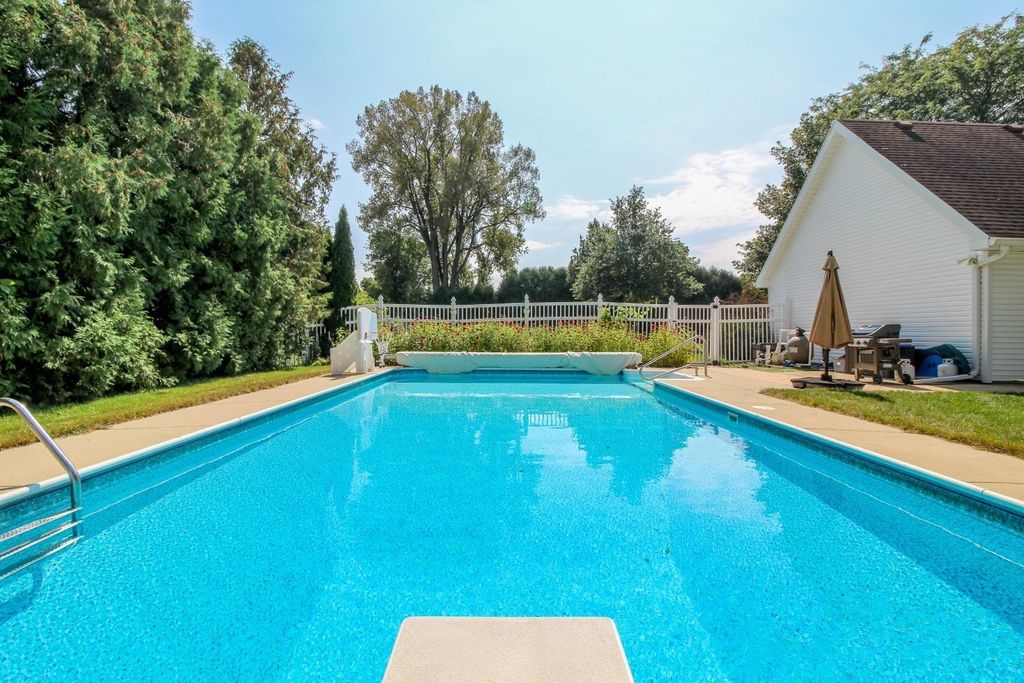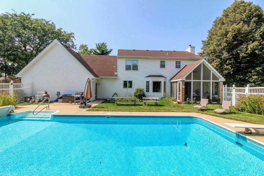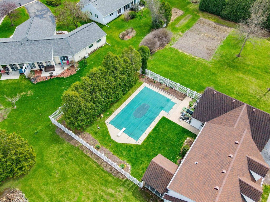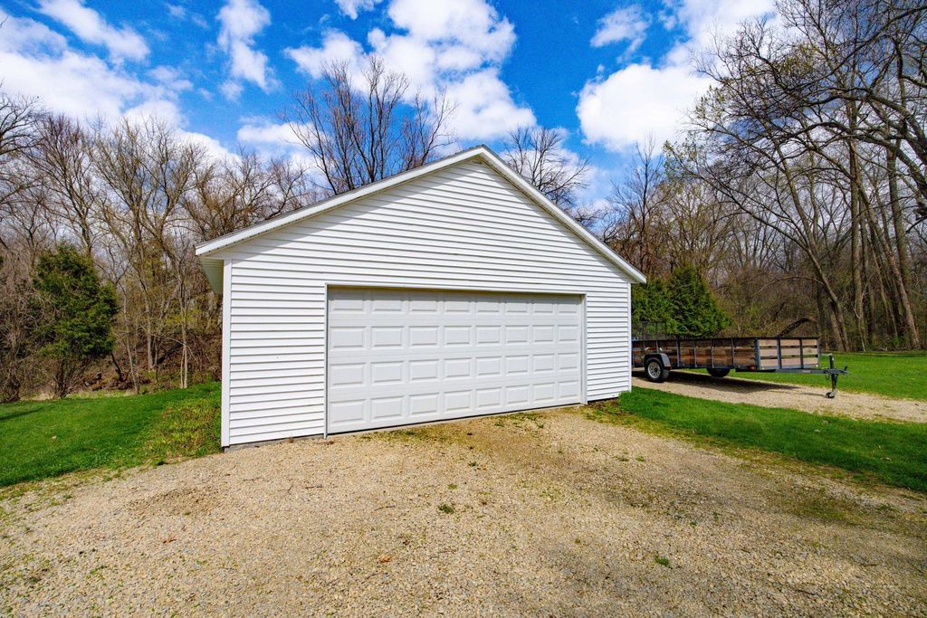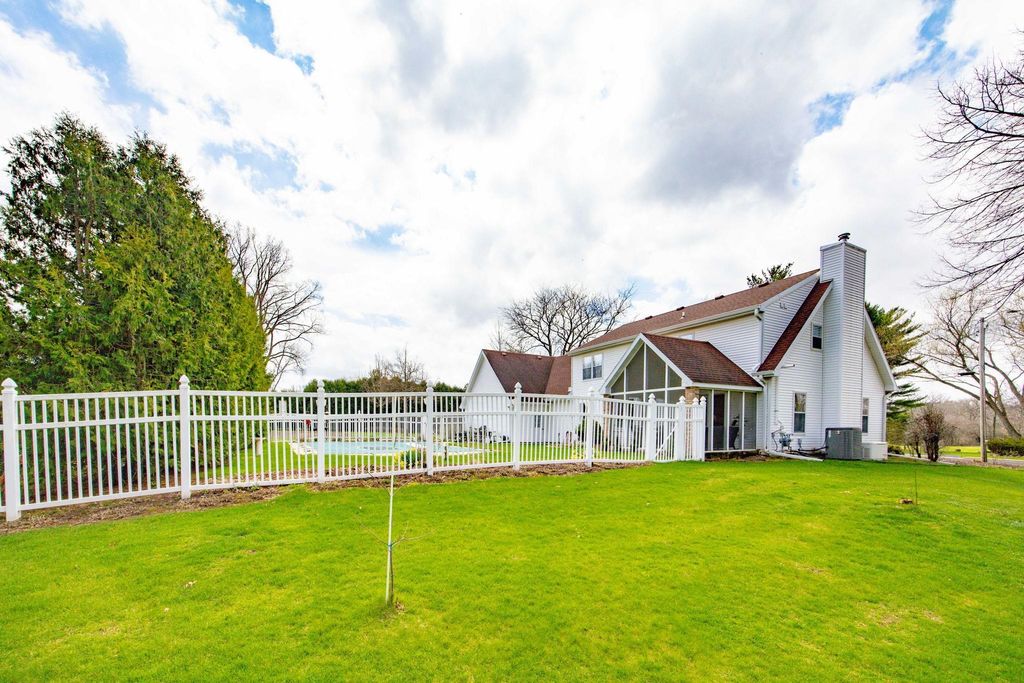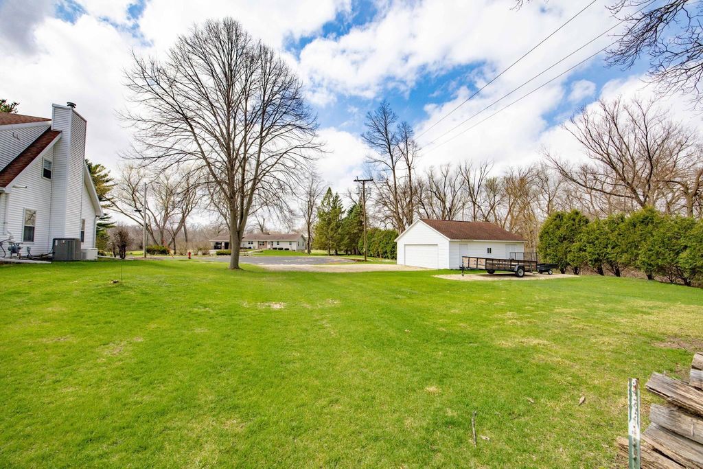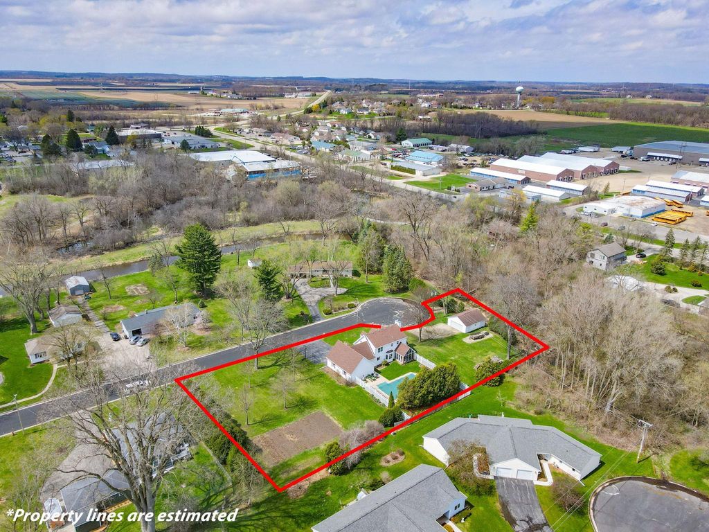 In town on 1.20 acres located at end of cul-de-sac offering privacy and park-like setting. Hardwood floors & ceramic tile flooring throughout. Main level laundry room, gorgeous half bath, formal DR, updated kitchen for entertaining w/large island & dinette area, an abundance of beautiful cabinetry, hard surface counter tops and built-in hutch. Relax in spacious living room w/woodburning FP open to screen porch overlooking private yard & beautiful inground pool. Staircase invites you to bedrooms, 2 bathrooms & an oversized closet for clothes & added storage. Basement is partially finished with exercise room and an abundance of storage or room for future finished living space; plumbed for additional bathroom. Convenient staircase from basement to the 2+ car attached garage. Need more storage, not a problem! Additional 2+ car garage for mowers, toys, extra cars, etc. Adjoining buildable lot for kids to roam, garden or host outdoor events. Perfectly packaged piece of paradise on Park!