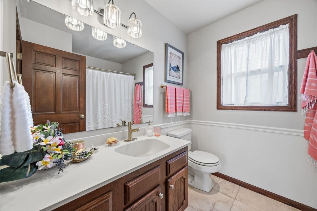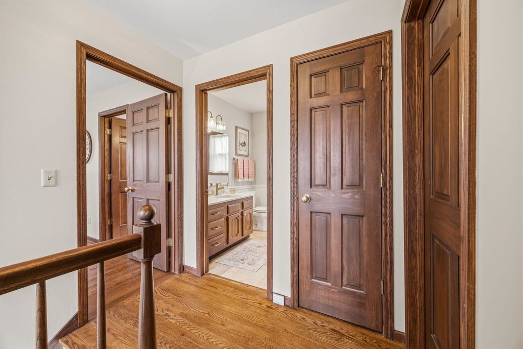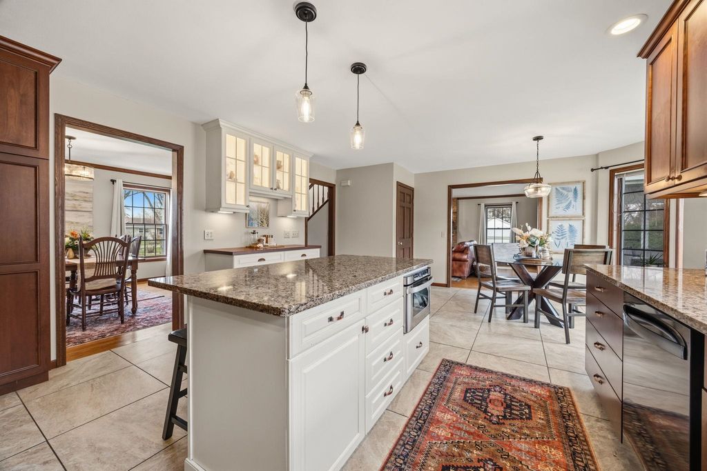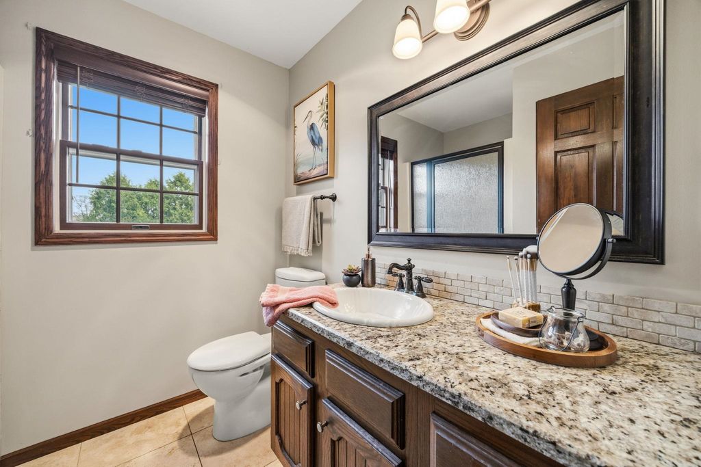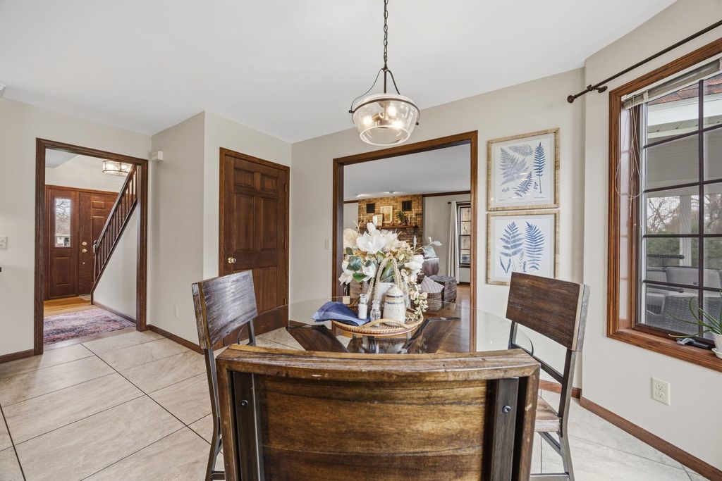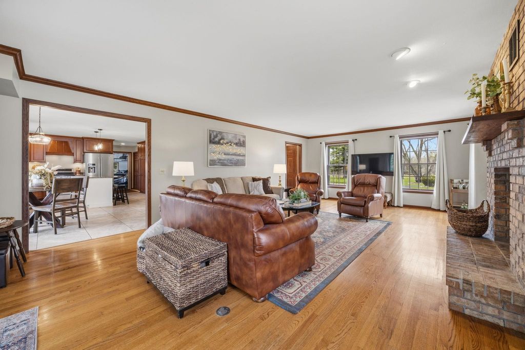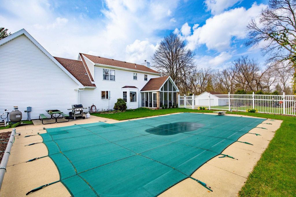 In town on 1.20 acres located at end of cul-de-sac offering privacy and park-like setting. Hardwood floors & ceramic tile flooring throughout. Main level laundry room, gorgeous half bath, formal DR, updated kitchen for entertaining w/large island & dinette area, an abundance of beautiful cabinetry, hard surface counter tops and built-in hutch. Relax in spacious living room w/woodburning FP open to screen porch overlooking private yard & beautiful inground pool. Staircase invites you to bedrooms, 2 bathrooms & an oversized closet for clothes & added storage. Basement is partially finished with exercise room and an abundance of storage or room for future finished living space; plumbed for additional bathroom. Convenient staircase from basement to the 2+ car attached garage. Need more storage, not a problem! Additional 2+ car garage for mowers, toys, extra cars, etc. Adjoining buildable lot for kids to roam, garden or host outdoor events. Perfectly packaged piece of paradise on Park!
