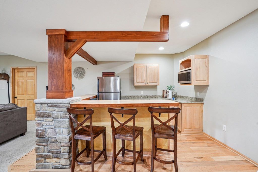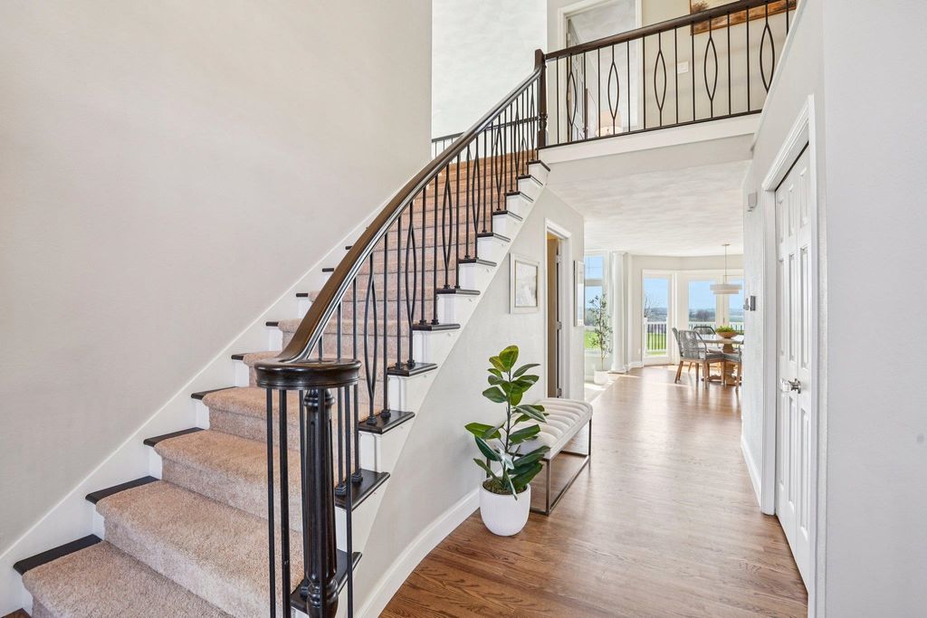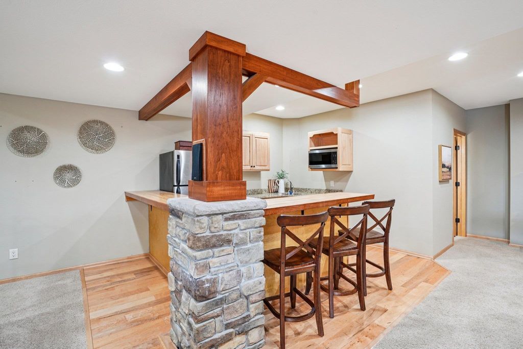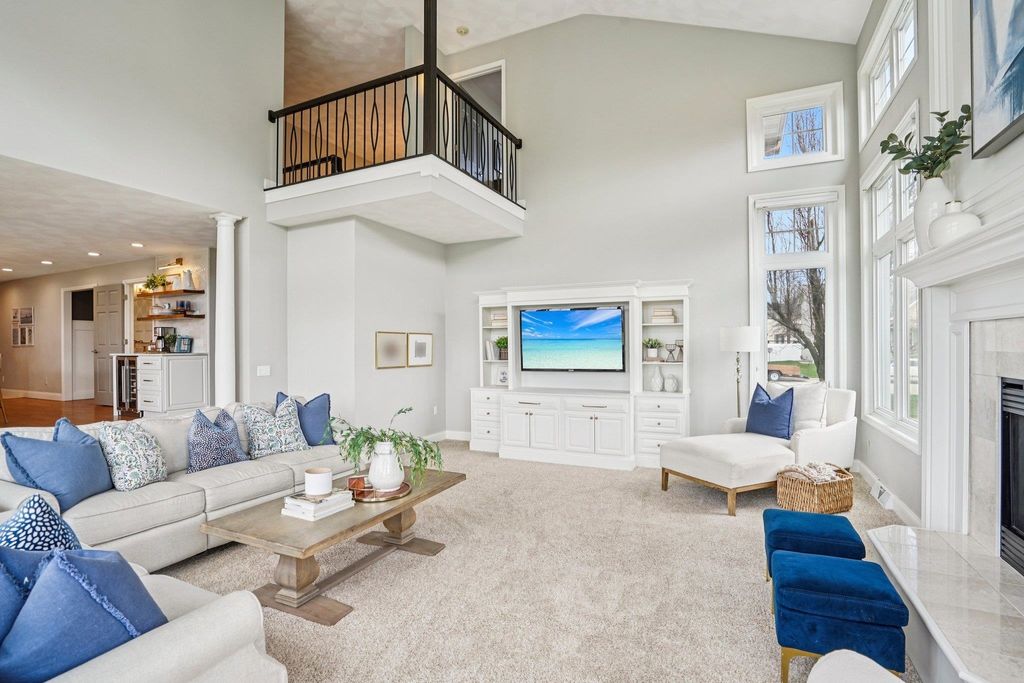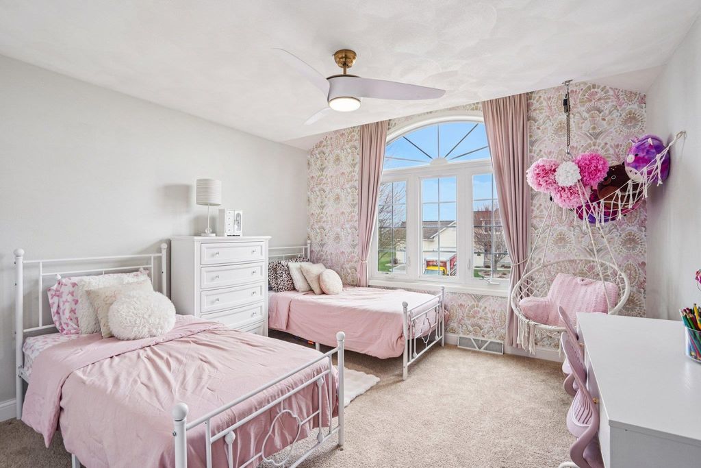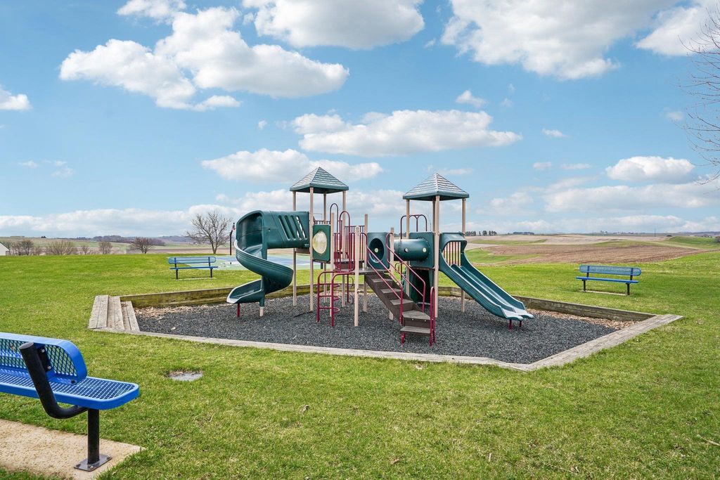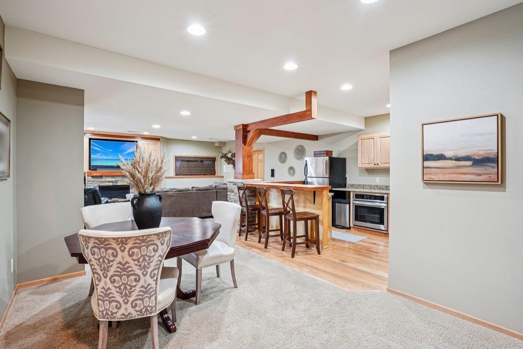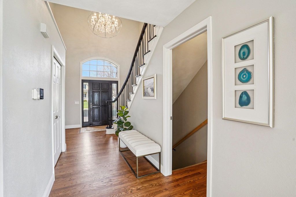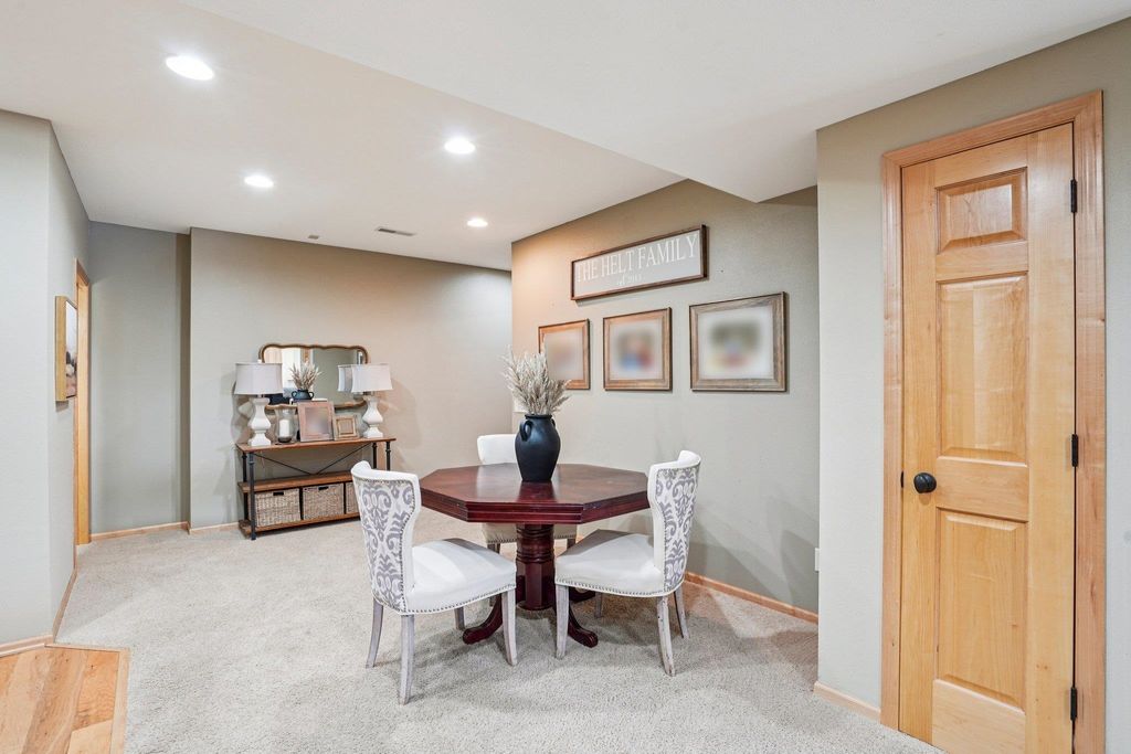 Showings start 4/24. Stunning 2-story next to quiet neighborhood park with breathtaking southern views of rolling hills! Vaulted great room with floor-to-ceiling custom fireplace, refinished hardwood floors & freshly painted throughout. Gorgeous sunroom. Completely updated designer kitchen shines with white cabinetry, quartz countertops, stainless appliances, large island/breakfast bar & chef's pantry. Main floor office with custom built-in desk/office cabinetry. Main floor laundry. Updated bathrooms. Upstairs has 3 spacious bedrooms & primary suite with walk-in closet, jetted tub, glass block double shower & in-floor heating/cooling. Exposed lower level has a 4th bedroom, full bath, family room w/custom fireplace, built-in entertainment center & kitchenette. Newer HVAC & water heater, zoned heating/cooling. 3+ car garage w/basement access & epoxy floors. Enjoy outdoor living with new Trex deck, stamped concrete patio, gas fire pit, and fresh landscaping. A must-see!