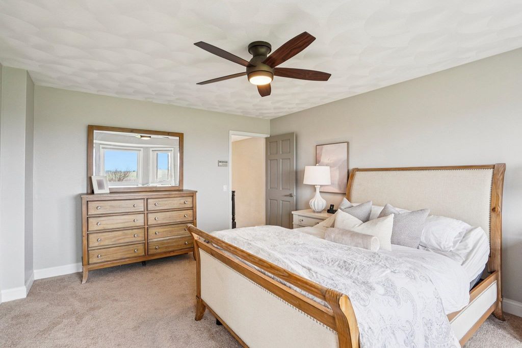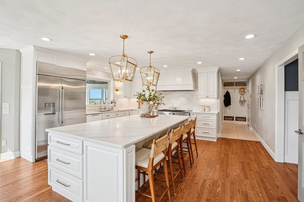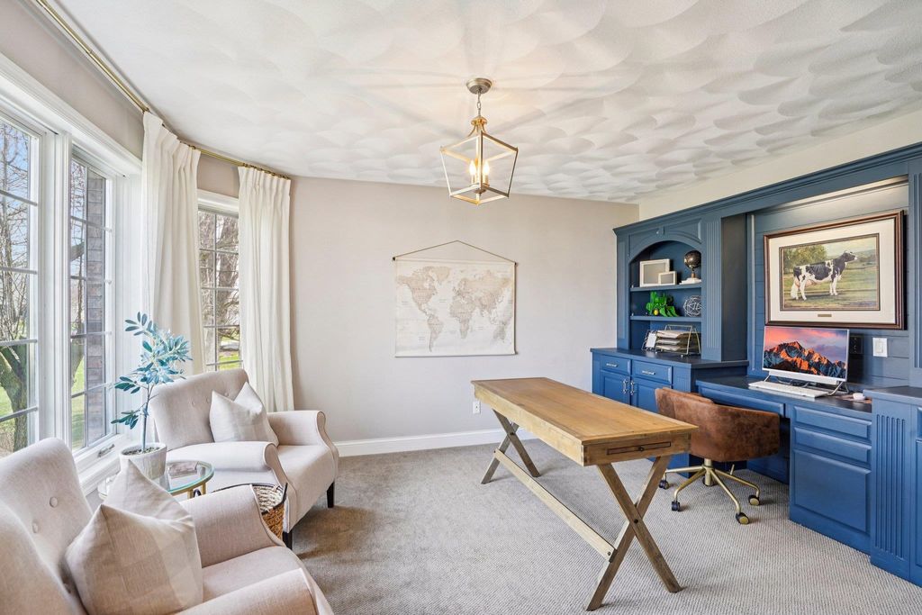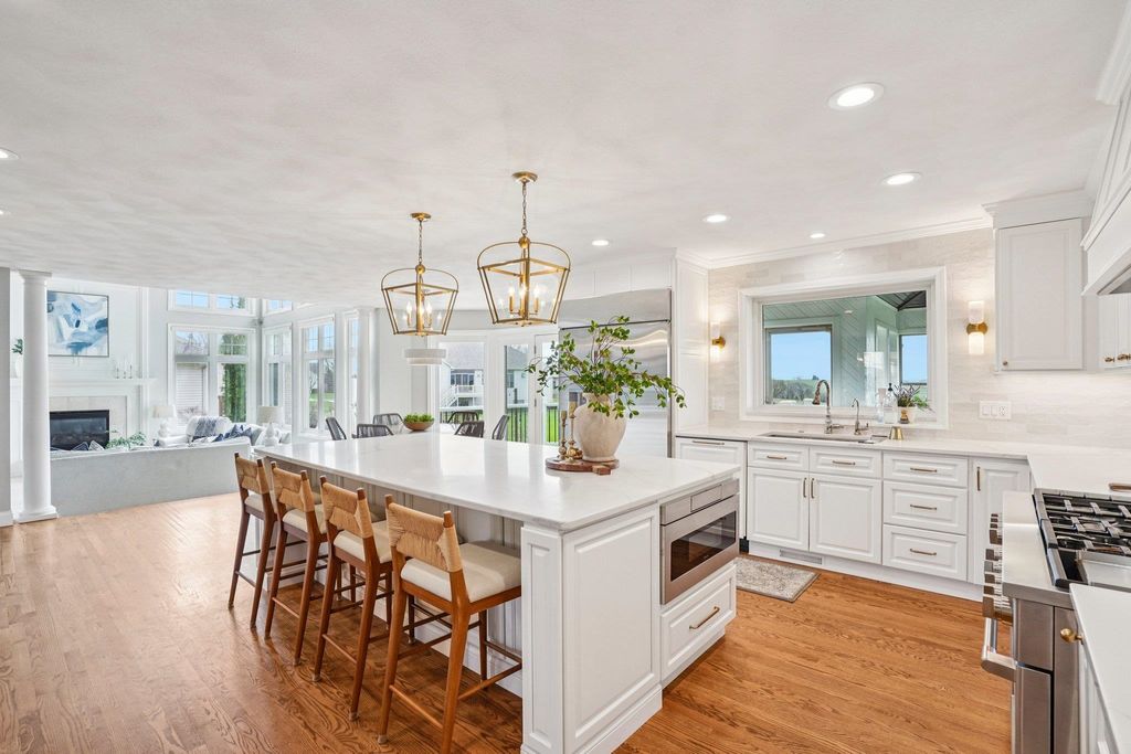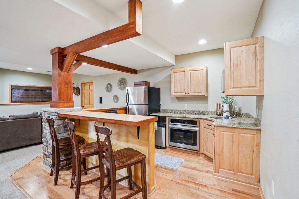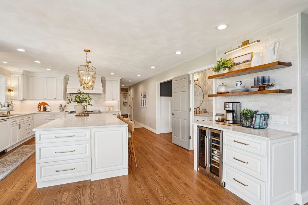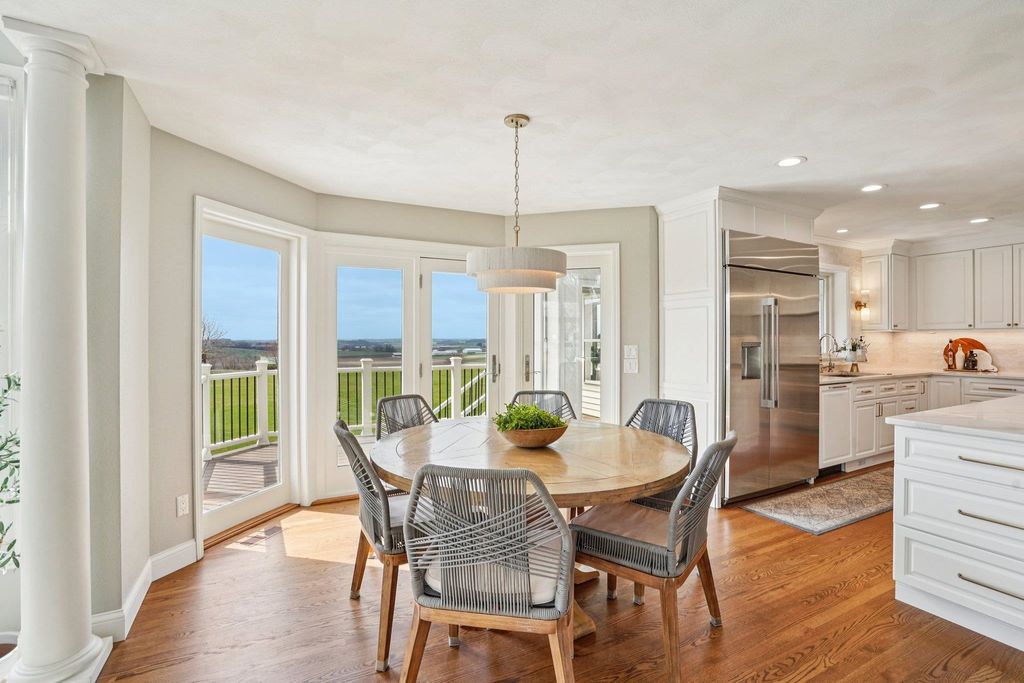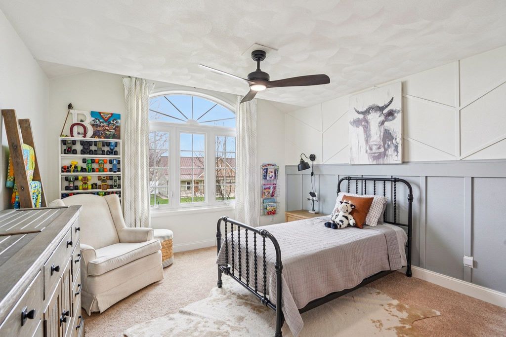 Showings start 4/24. Stunning 2-story next to quiet neighborhood park with breathtaking southern views of rolling hills! Vaulted great room with floor-to-ceiling custom fireplace, refinished hardwood floors & freshly painted throughout. Gorgeous sunroom. Completely updated designer kitchen shines with white cabinetry, quartz countertops, stainless appliances, large island/breakfast bar & chef's pantry. Main floor office with custom built-in desk/office cabinetry. Main floor laundry. Updated bathrooms. Upstairs has 3 spacious bedrooms & primary suite with walk-in closet, jetted tub, glass block double shower & in-floor heating/cooling. Exposed lower level has a 4th bedroom, full bath, family room w/custom fireplace, built-in entertainment center & kitchenette. Newer HVAC & water heater, zoned heating/cooling. 3+ car garage w/basement access & epoxy floors. Enjoy outdoor living with new Trex deck, stamped concrete patio, gas fire pit, and fresh landscaping. A must-see!