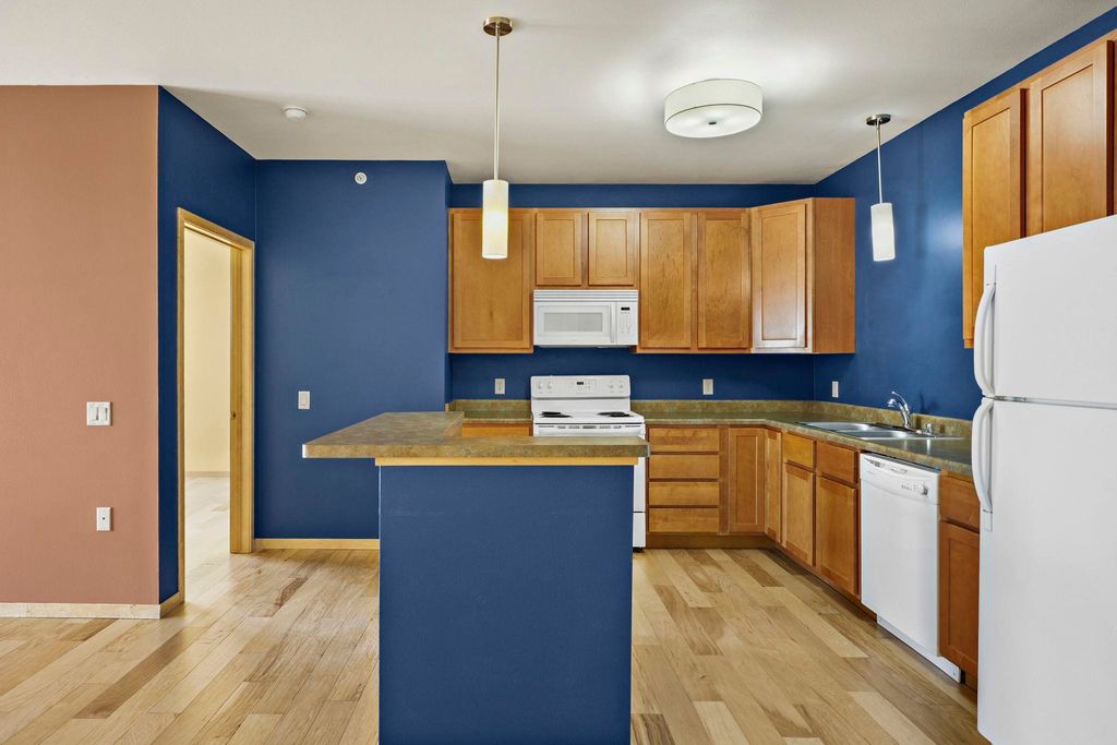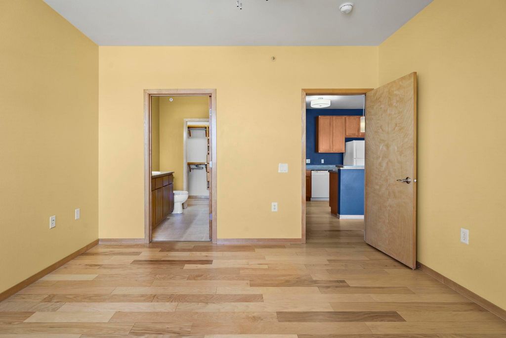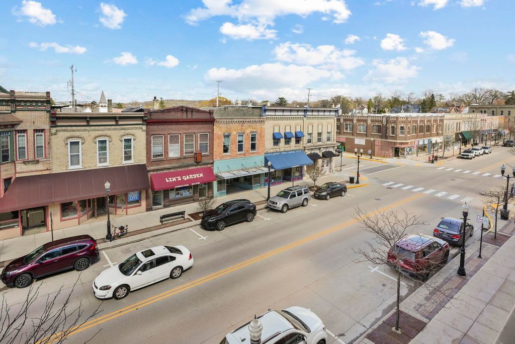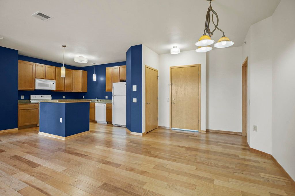 Fulton Square Top Floor 2 bedroom, 2 bath condo boasts a spacious, private, sun filled condo in a walkable location in downtown Edgerton! Great open floor plan; kitchen boasts maple cabinetry, breakfast bar, pantry and is perfect for entertaining. Newer hickory floors throughout, private laundry w/built-in custom closets, both bedrooms offer built-in custom closet systems, with the primary suite featuring a walk-in closet & bath with walk in shower. Two underground parking stalls, elevator & secure building, new roof 2026, new furnace/central air 2022. Make you move, properties like this are selling quickly.