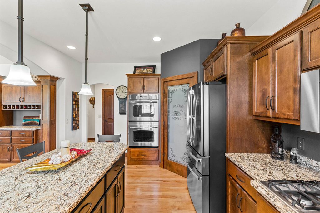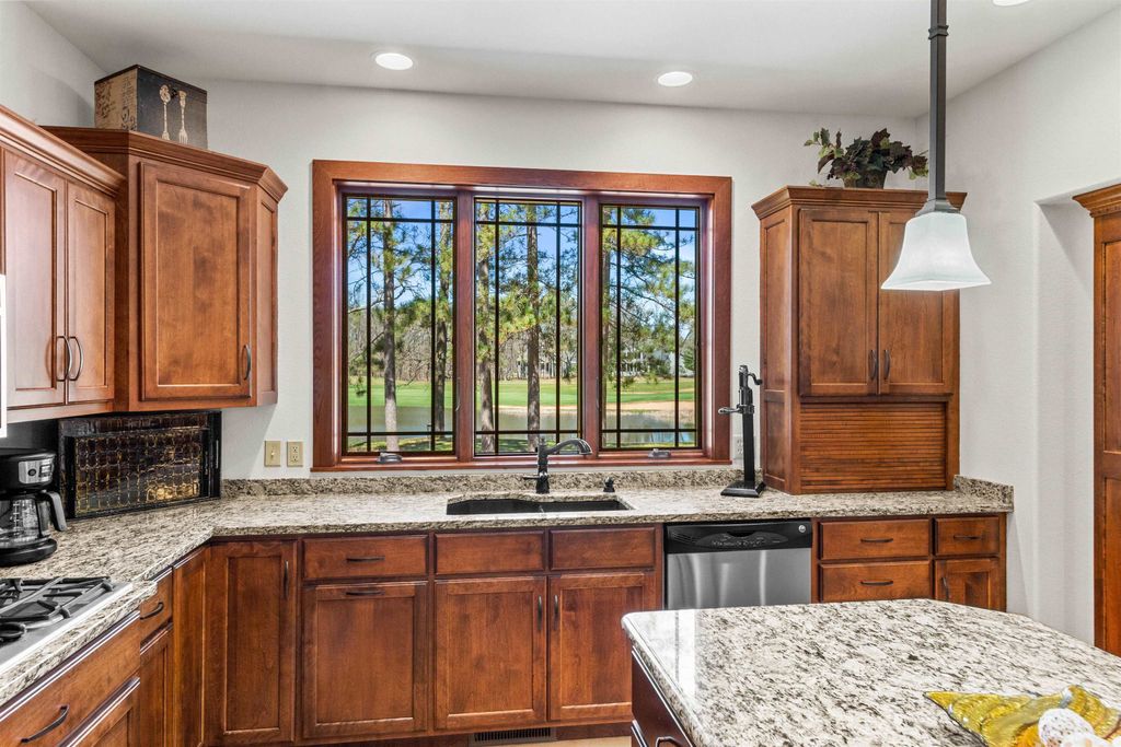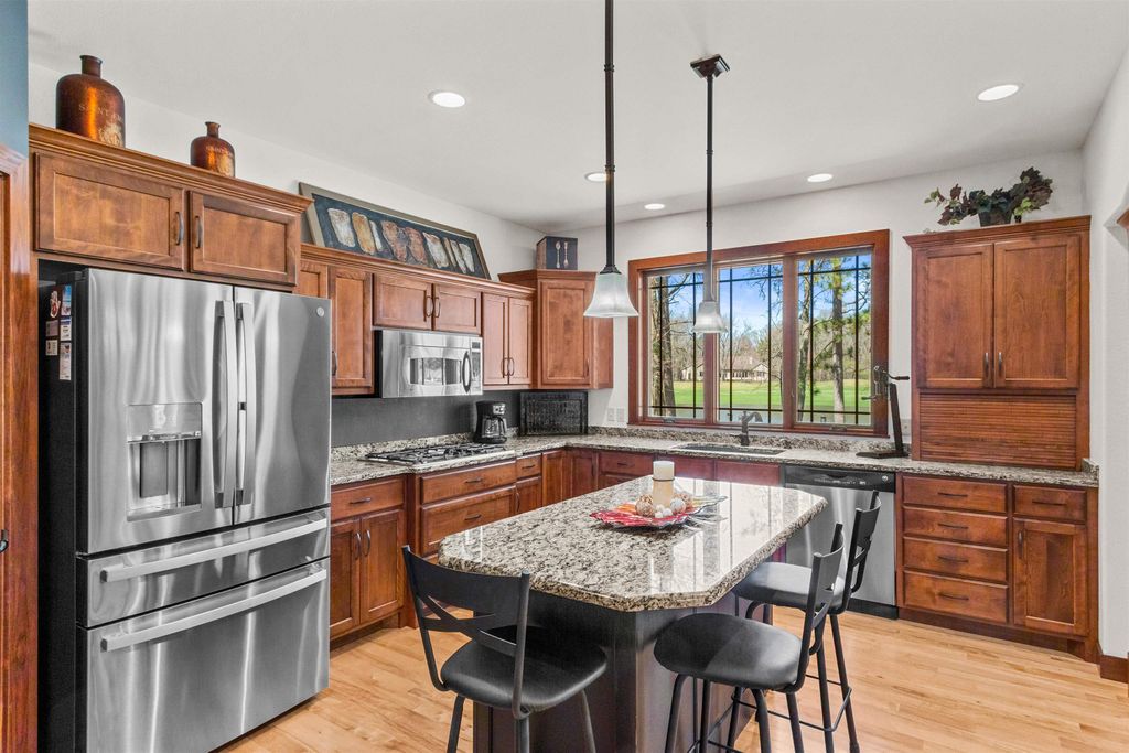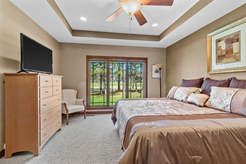 Meticulously maintained and seasonally lived in Lake Arrowhead Gem! Breathtaking views of the Pond, Green and Fairway of gorgeous Hole#12! So much game to be watched from this location, yet private! Custom Cabinetry throughout is just one highlight you will notice in this Custom-built, one Owner Home. Kitchen has so many great features: Gorgeous Granite Tops; Corner Pantry; Island; GE Profile appliances include a DBL Wall Oven, Gas Cooktop, Built-in Microwave and Dishwasher. The Open Concept features Maple Flooring, Cathedral or 9' Ceilings throughout, expansive windows and doors along the golf-course side of the home showcase stunning views! Gorgeous Primary w/2 Walk-in Closets and Tile Shower! The Daylight Lower Level has a nice ceiling height in the Lg Family Rm, 2 more Bedrooms & Full Bath. Convenient Main Floor Laundry & 1/2 Bath off of the Lg 3 Stall Garage that also has access to LL. All this and it's close to the Lake as well as just a short jaunt from Sand Valley Golf Resort.