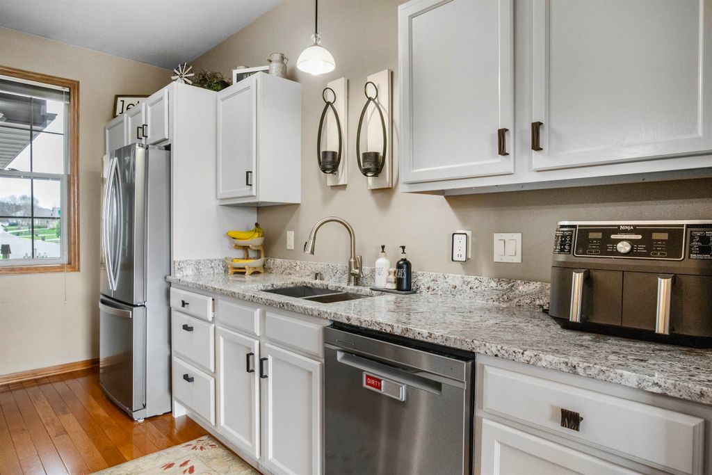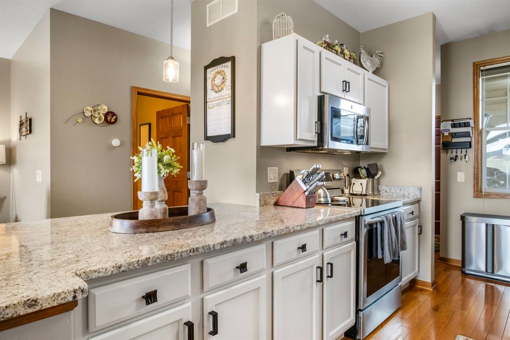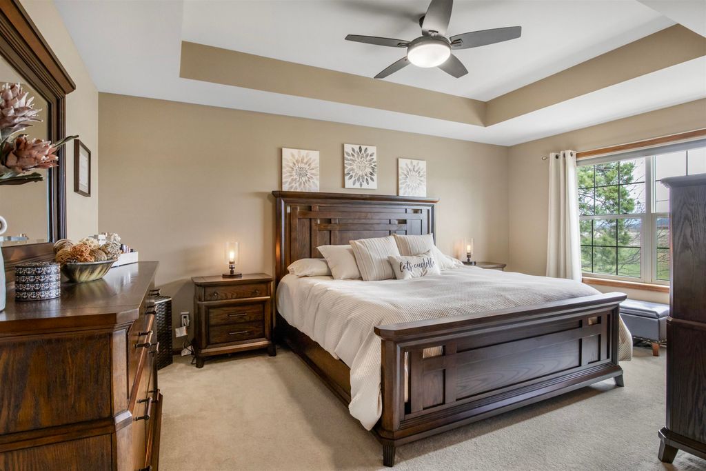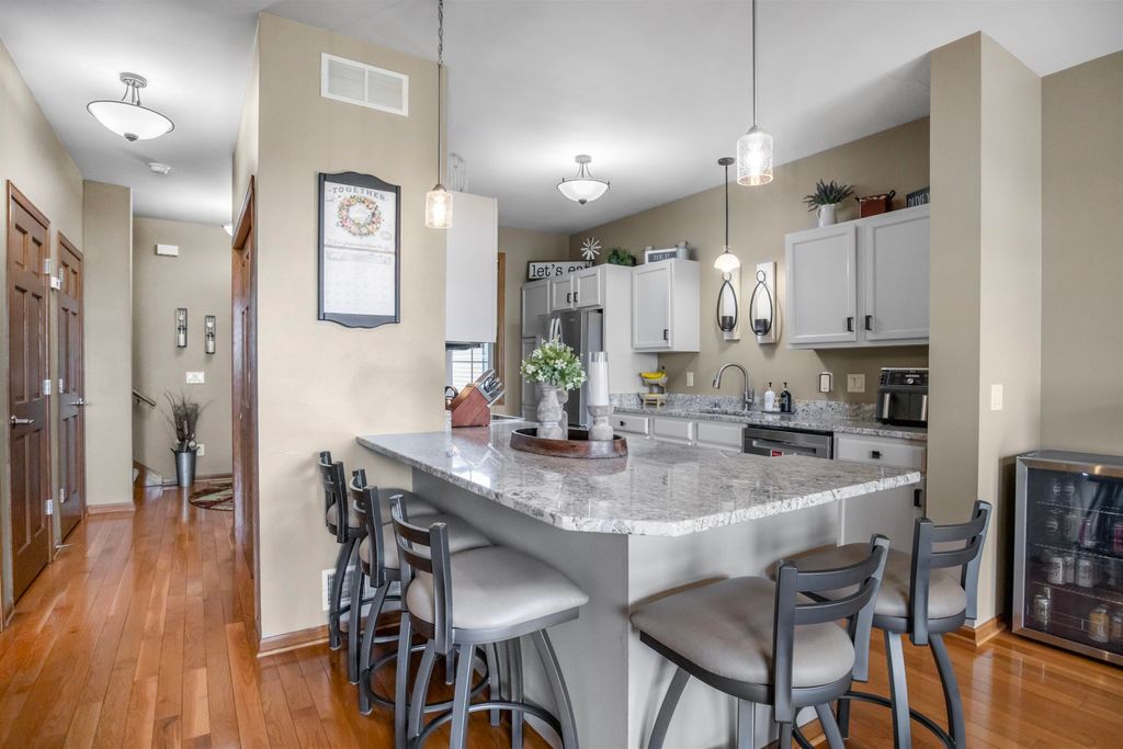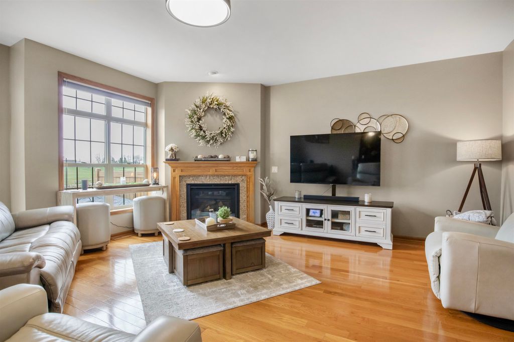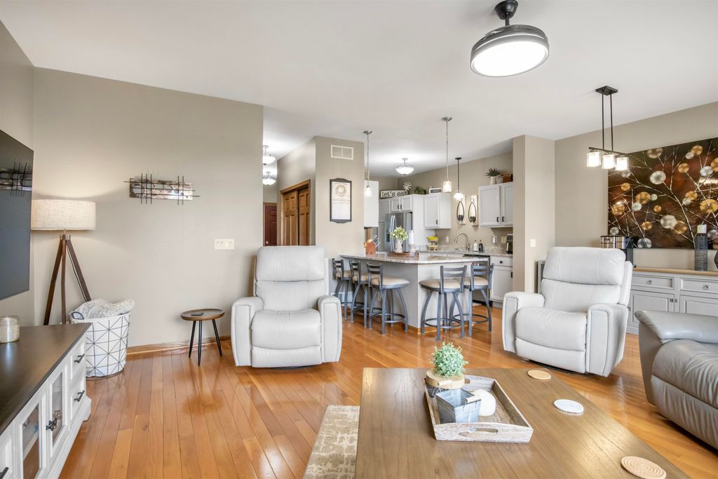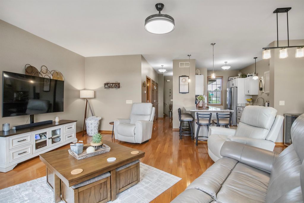 Immaculate, updated, 3 bed, 2.5 bath condo offers multiple upgrades. Open floor plan with spacious rooms throughout. Stainless steel appliances, hardwood floors, solid surface counter tops, gas fireplace, LL Theatre room. Beautiful master suite with full bath and walk-in closet. Full basement offers theatre area,and is plumbed for another bath. 2 car attached garage. Move in ready. All measurements are approx. Buyer to verify if needed. No showings until open house on April 25th. All offers to be in by 12;00 noon, 4/28/26. Seller's are flexible as to occupancy. See Docs. for recent improvements.