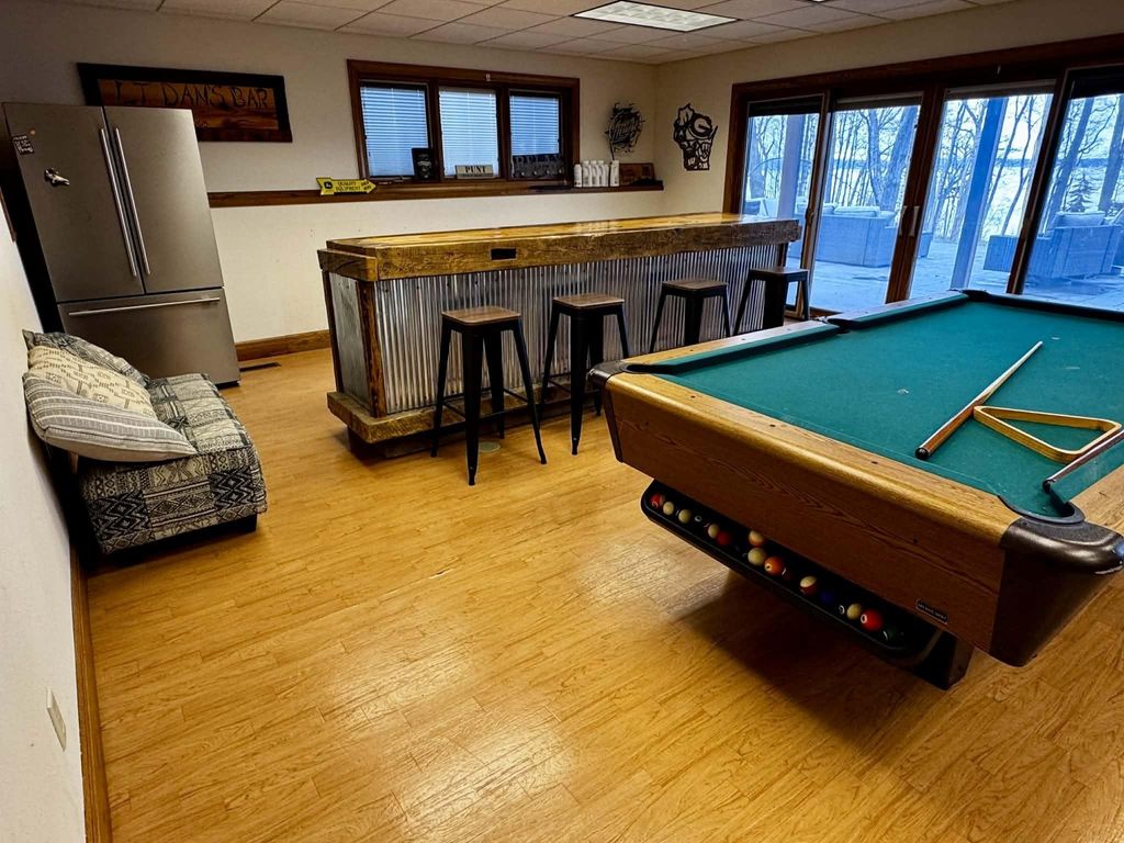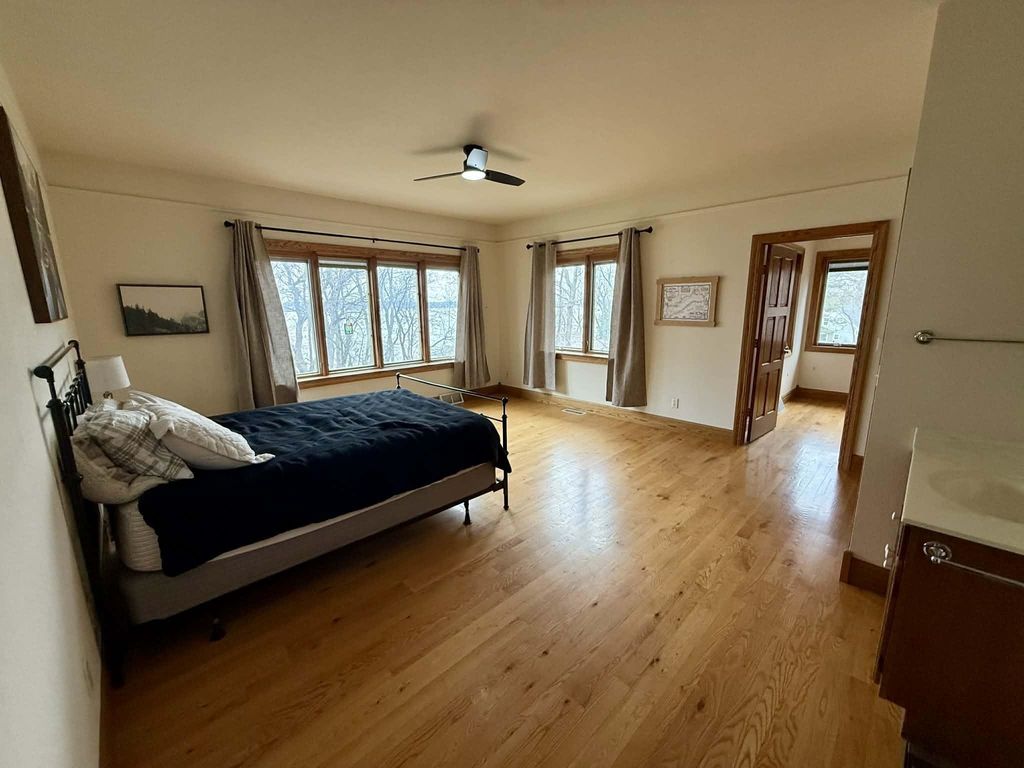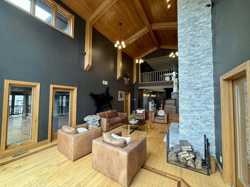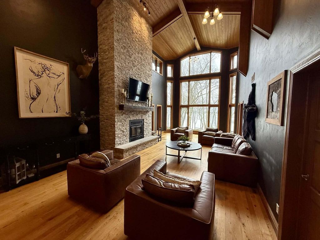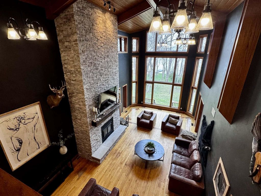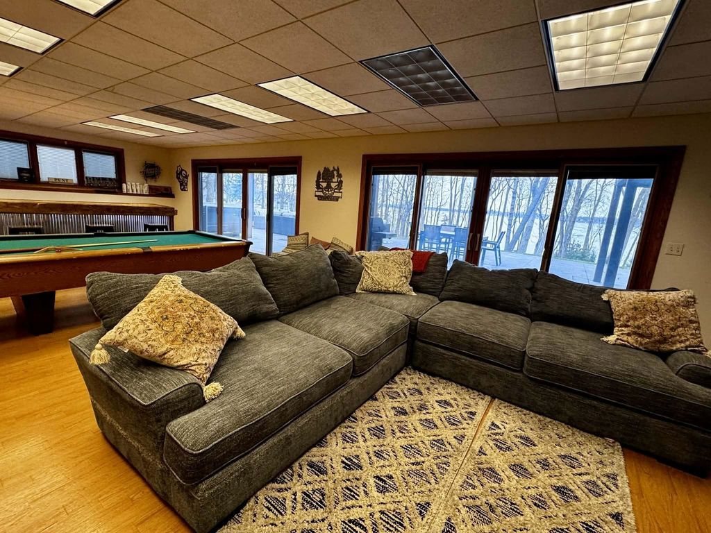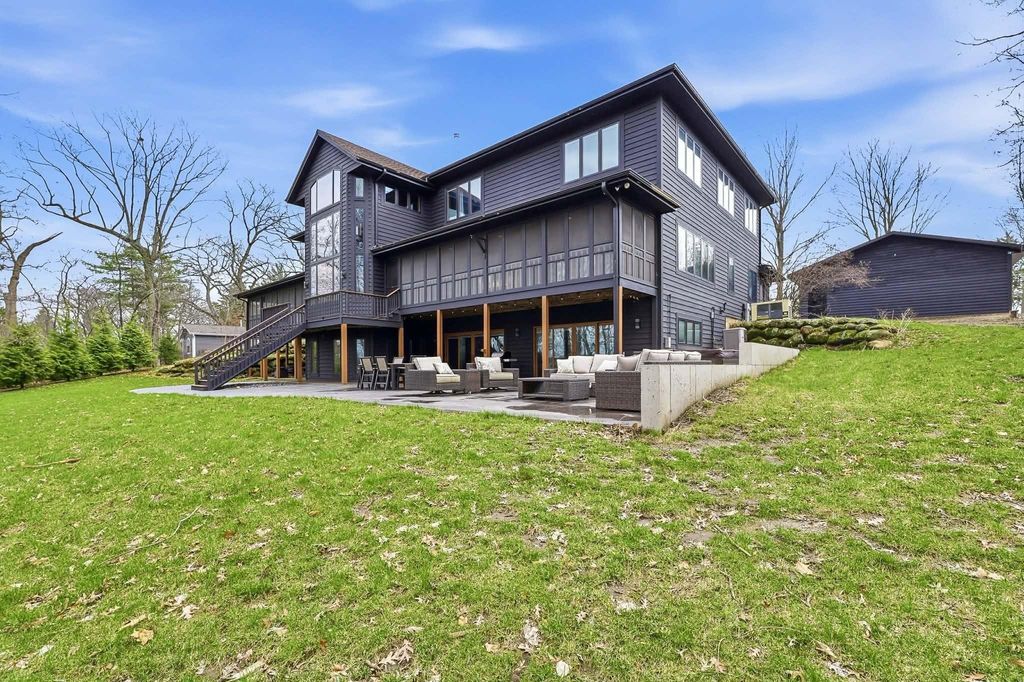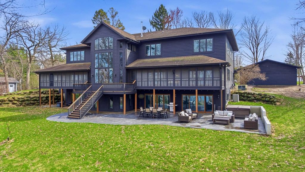 Experience Luxury Lakefront Living on Big Green Lake with 106 ft of frontage in this expansive 4 BDRM, 4.5 bath home w/ over 7,000 sq ft of thoughtfully designed space. Large windows throughout fill the home with natural light and showcase beautiful lake views. The main living area features vaulted ceilings and a stunning floor-to-ceiling stone fireplace. The updated kitchen offers sleek finishes, high-end appliances, and a functional layout ideal for entertaining. Enjoy multiple living and recreation areas including a spacious LL with bar and game space, plus a dedicated fitness room, and an upper spacious in home theater. The primary suite provides a private retreat with direct access to outdoor living. Step outside to enjoy the shoreline, private pier, and beautifully landscaped setting- perfect, for relaxing or hosting. Enjoy multiple outdoor screened in spaces for stunning lake views. A rare opportunity to own a standout property on one of Wisconsin's most sought-after lakes.