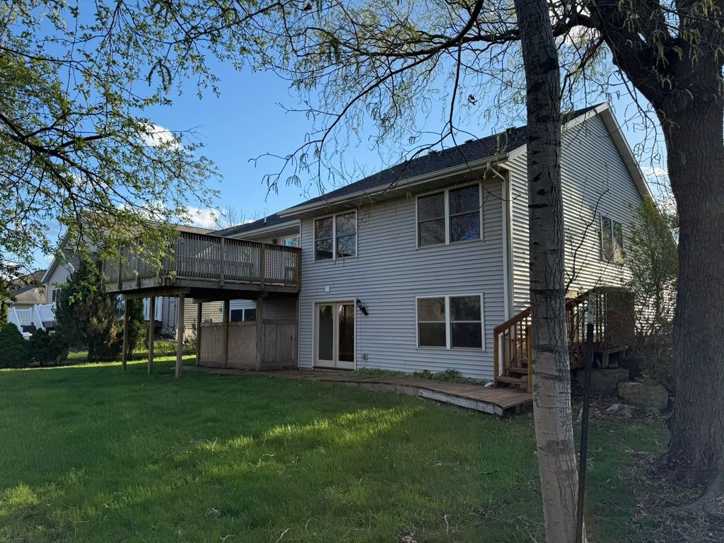 Four levels of finished living space! 4 bedrms, 3 baths, vaulted living room w/gas fireplace, kitchen has plentiful cabinets & wall pantry, island w/breakfast bar, opening onto generous deck overlooking extended green space w/great views. Master bedrm w/full bath & w/in closet. Walk out LL(31x17) family room w/many windows for natural light, full bath, 4th bedroom & office. 4th level w/finished strorage/laundry area. All set on a lot that has been perfectly planted w/native plantings for the nature lover.