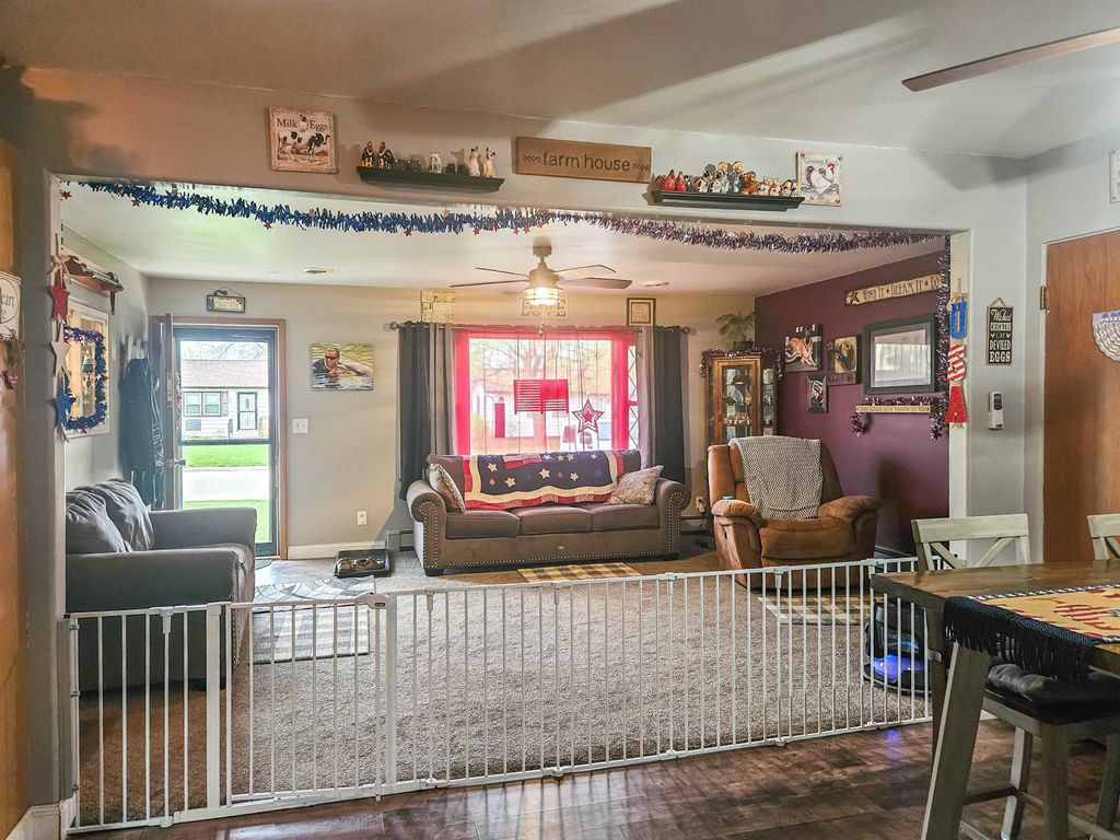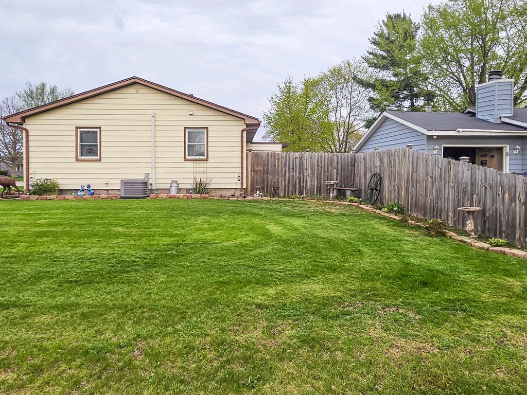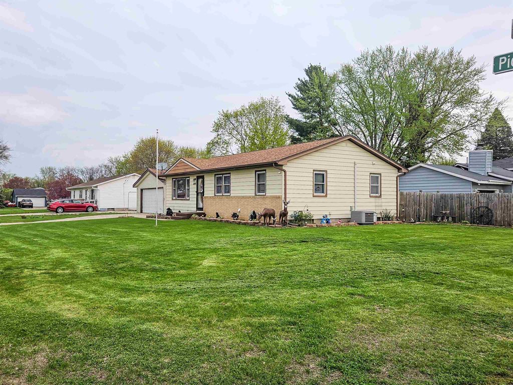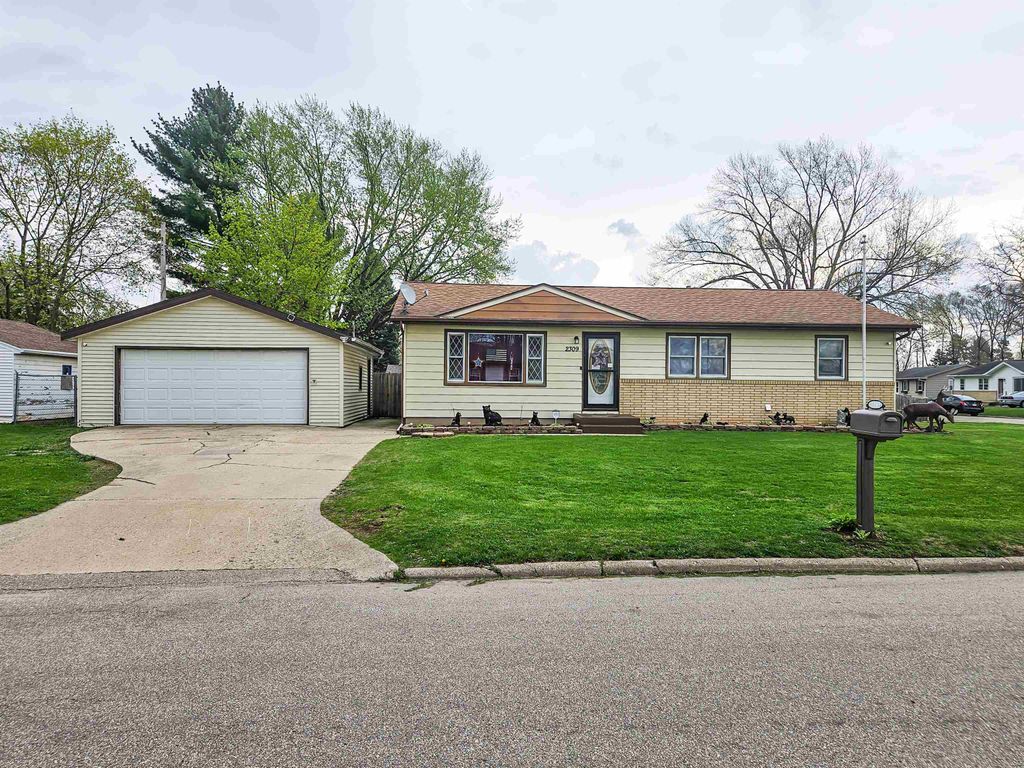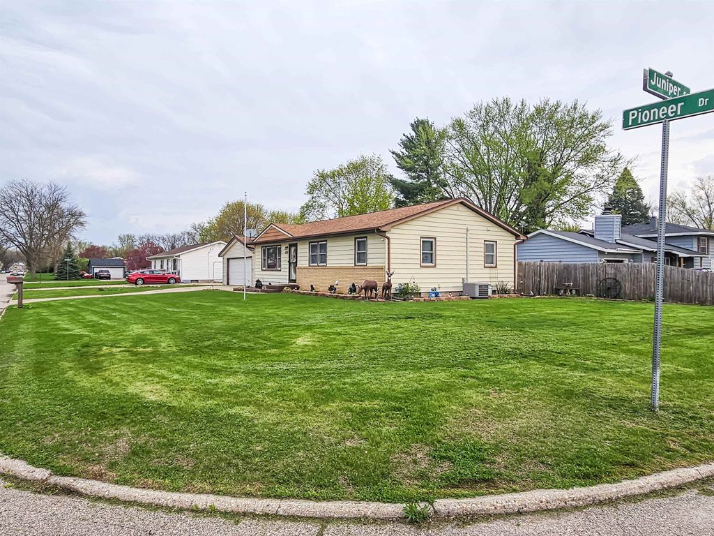 Adorable ranch with nearly 1,500 sq ft on a large corner lot with 6-ft privacy fence! Features 3 bedrooms, 1.5 baths, including a primary with private half bath. Bedroom 3 offers main floor laundry hookups, with additional laundry hookups in the lower level. Updated kitchen (2021) with new cabinetry with sliding shelving, granite countertops, and dining area with another pantry. Enclosed porch with new windows and slider leads to concrete patio. Detached 2-car garage and separate dog run. Major updates include A/C with ceiling ductwork (2021), electrical and panel (2021), water heater (2023), and new flooring throughout main living areas (2021). Bedrooms feature hardwood floors. Lower level offers approx. 300 sq ft of additional living space plus ample storage. Move-in ready with great space and updates!