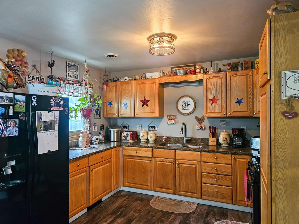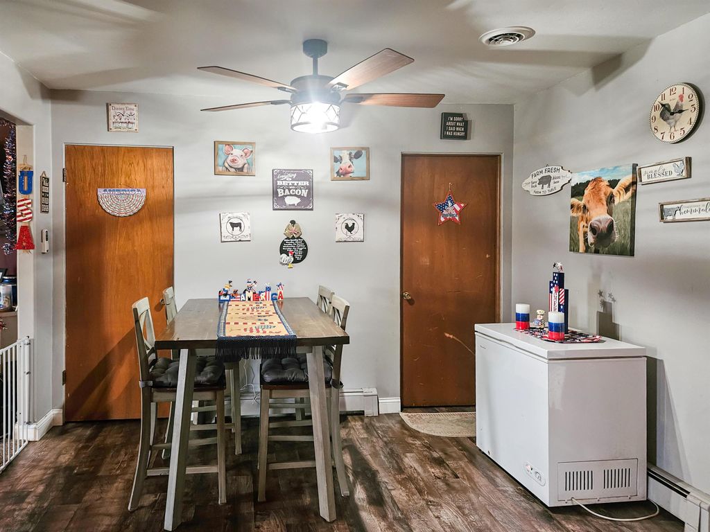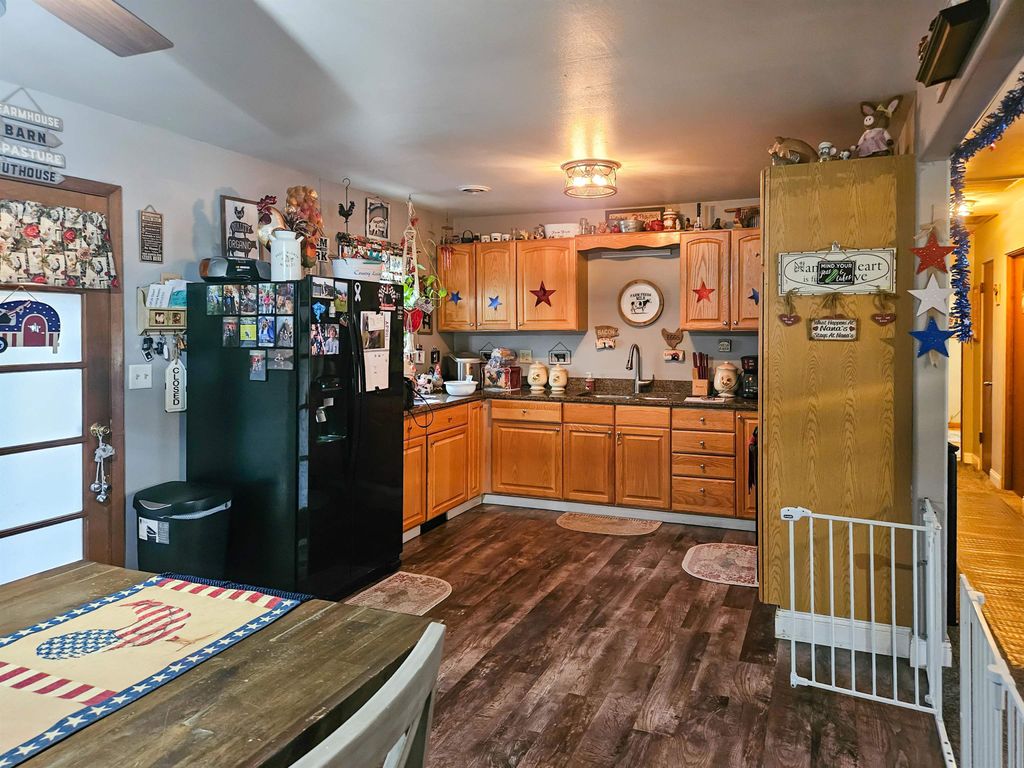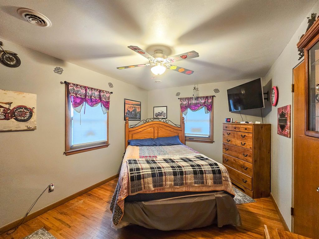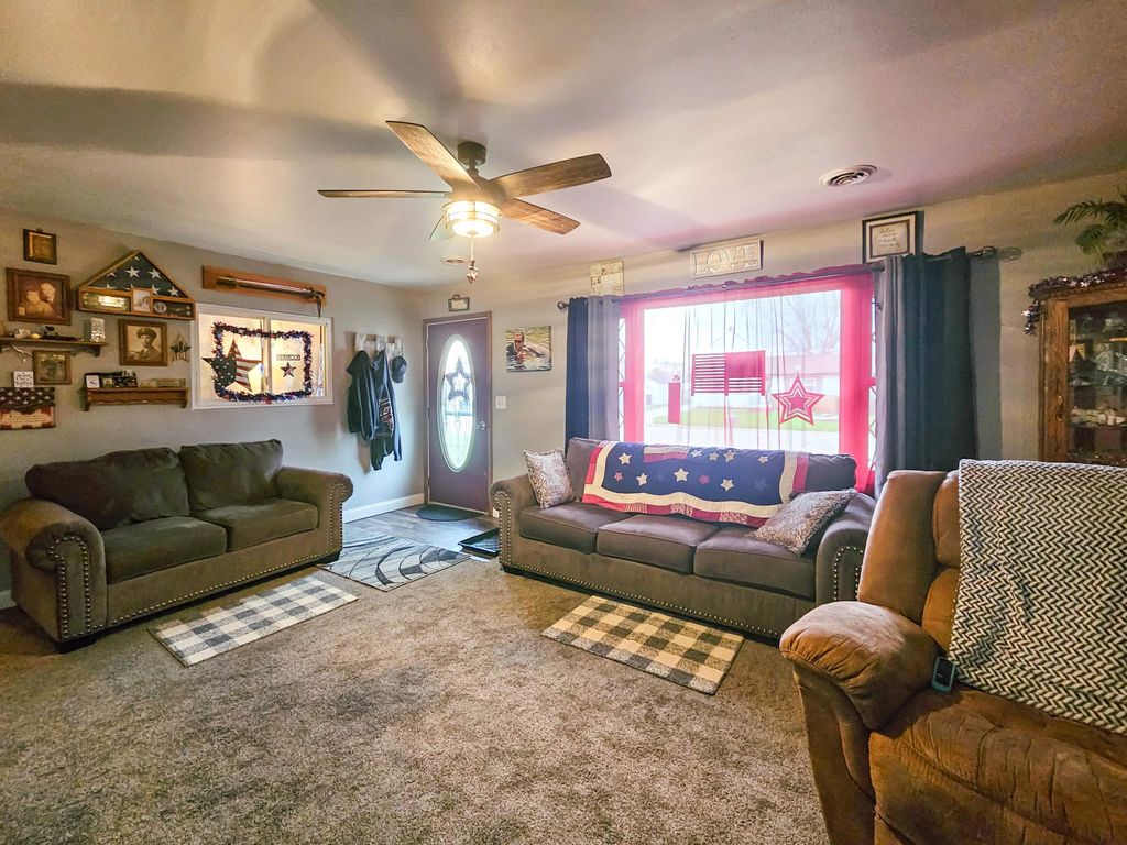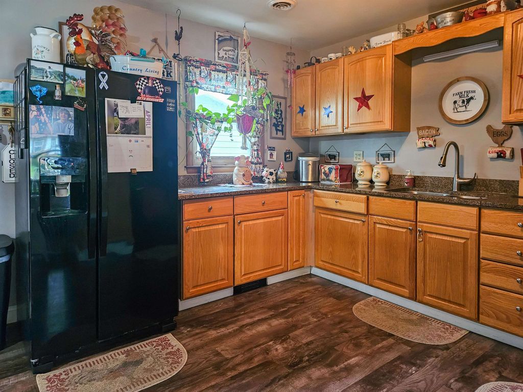 Adorable ranch with nearly 1,500 sq ft on a large corner lot with 6-ft privacy fence! Features 3 bedrooms, 1.5 baths, including a primary with private half bath. Bedroom 3 offers main floor laundry hookups, with additional laundry hookups in the lower level. Updated kitchen (2021) with new cabinetry with sliding shelving, granite countertops, and dining area with another pantry. Enclosed porch with new windows and slider leads to concrete patio. Detached 2-car garage and separate dog run. Major updates include A/C with ceiling ductwork (2021), electrical and panel (2021), water heater (2023), and new flooring throughout main living areas (2021). Bedrooms feature hardwood floors. Lower level offers approx. 300 sq ft of additional living space plus ample storage. Move-in ready with great space and updates!