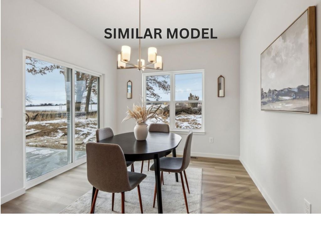 Welcome family and friends into your new energy-efficient green built home with open concept, featuring inviting spaces with an open concept main level. Plenty of room in this home for entertaining, playing games, watching TV or relaxing by your fireplace. This twin home features solid surface counter tops, extra large island and a sunny dinette overlooking a large green treated deck. Plenty of storage in rear foyer leading to 2 car garage. Enjoy the outdoors in the spacious backyard of nearly half an acre! Upstairs features a spacious primary bedroom with box tray ceiling, large walk in closet and ensuite bathroom. The other 2 bedrooms are also nicely sized and both have walk in closets. You will appreciate the conveniently located upper floor laundry room. Tons of potential for a future finished basement. Move-in ready in August 2026. Photos of similar model.
