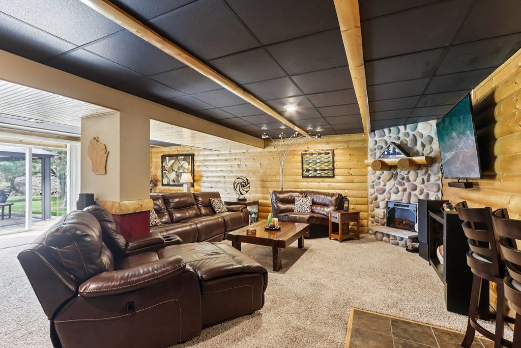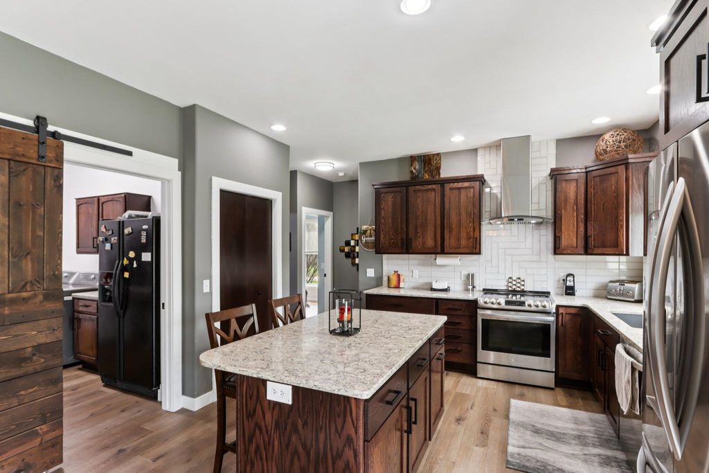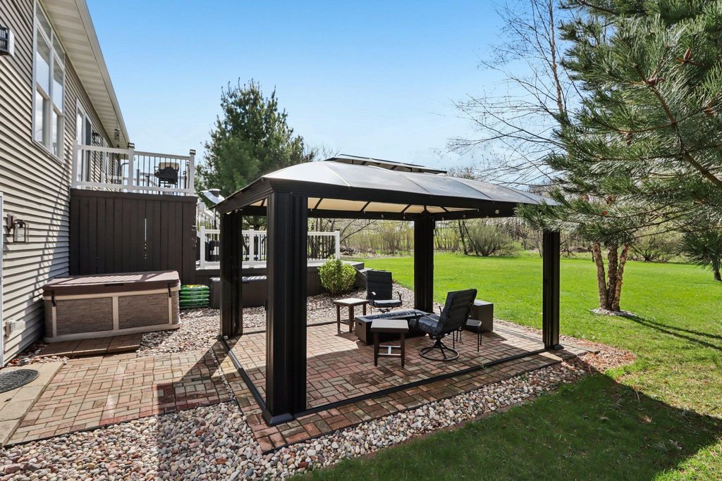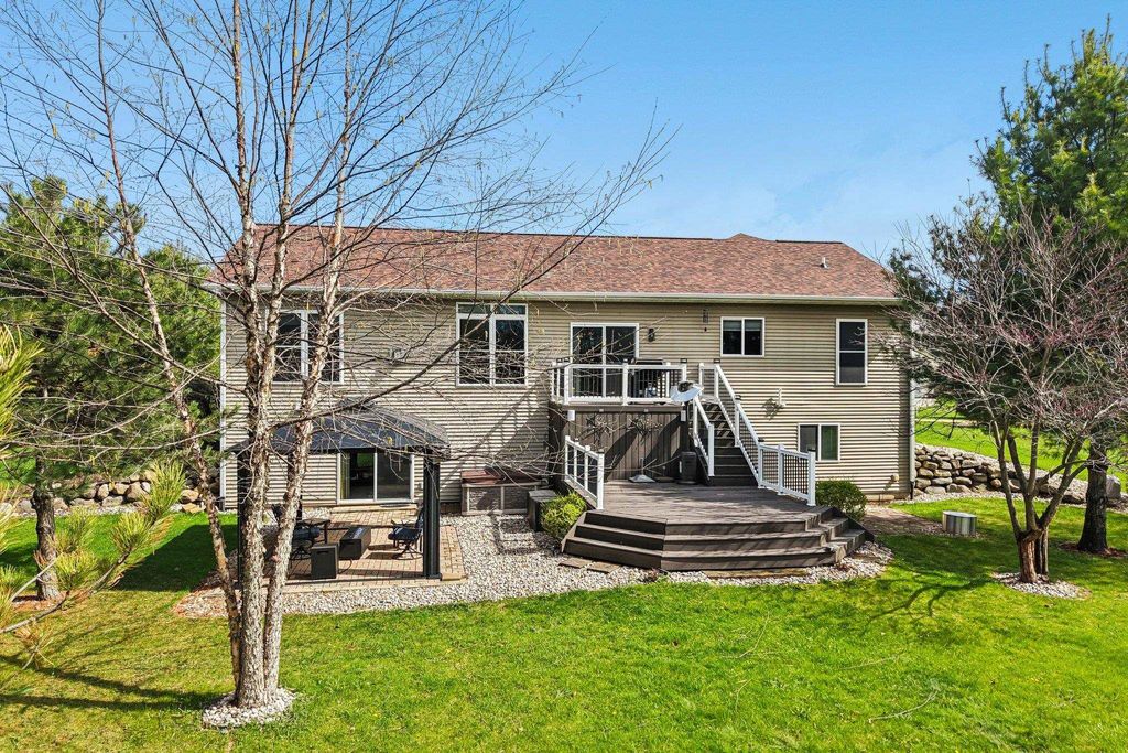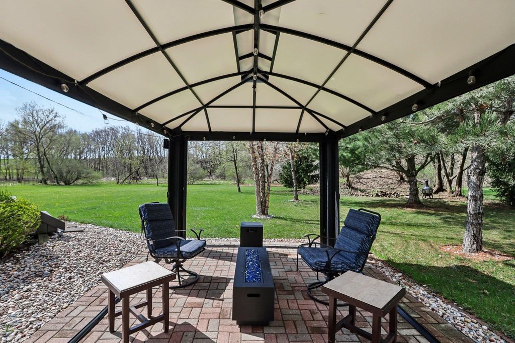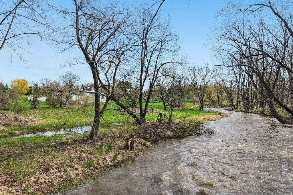 Showings begin 4/24. Beautifully updated ranch on nearly 3 scenic acres, with south end bordering Koshkonong Creek & just minutes from The Oaks Golf Course! This 4-bedroom, 2.5-bath home is perfect for entertaining. The fully remodeled main level features a stunning kitchen with quartz countertops, new cabinetry, stainless appliances & charming rustic barn door accent, plus a cozy living room with a gas fireplace. Convenient 1st floor laundry located just off the garage. Enjoy updated bathrooms, all-new LVP flooring, carpet, fresh paint, white woodwork, modern lighting, and ceiling fans throughout. The finished walkout lower level offers a spacious family room with a striking stone fireplace, rustic bar, private office/den with a window & brand-new half bath. Recent updates include new roof & gutters (2024) and refreshed landscaping. Relax outdoors in the screened-in gazebo or on the paver patio. A large 3-car garage & picturesque setting complete this must-see home! Ultimate UHP incl