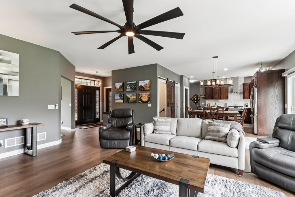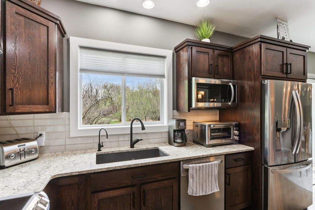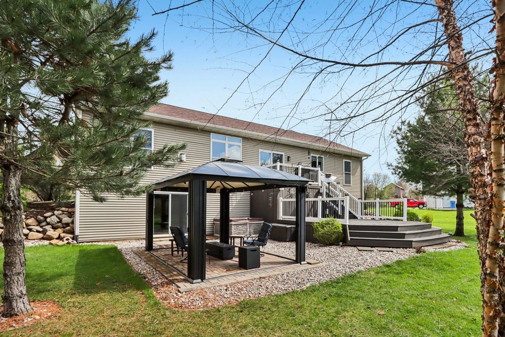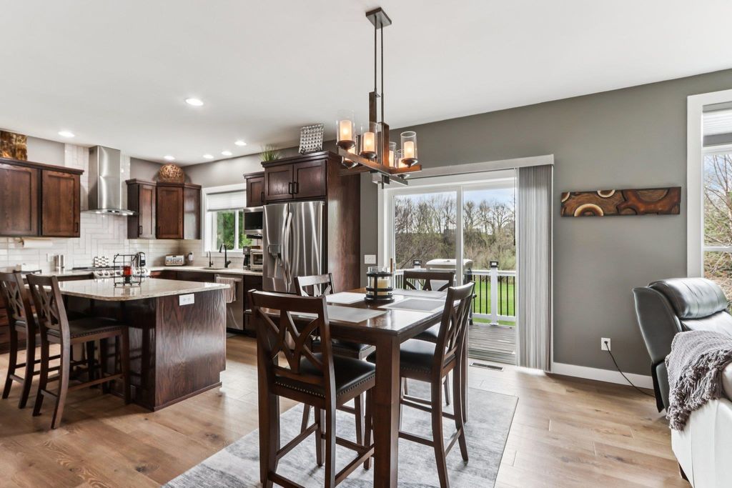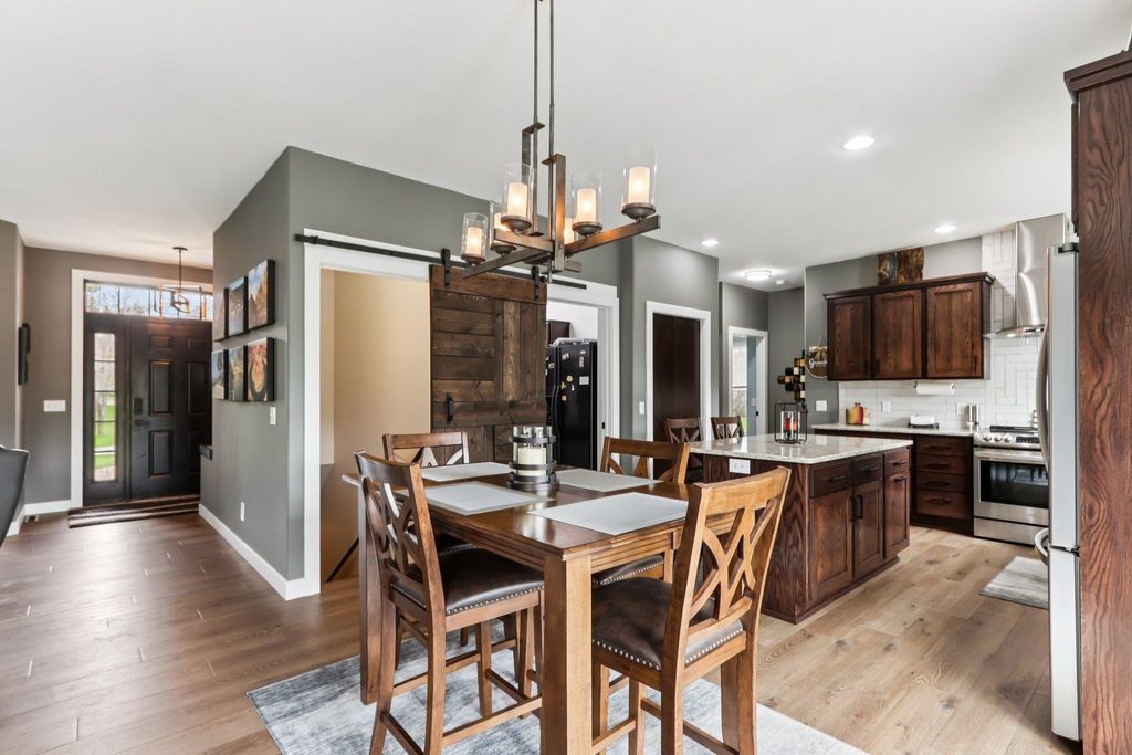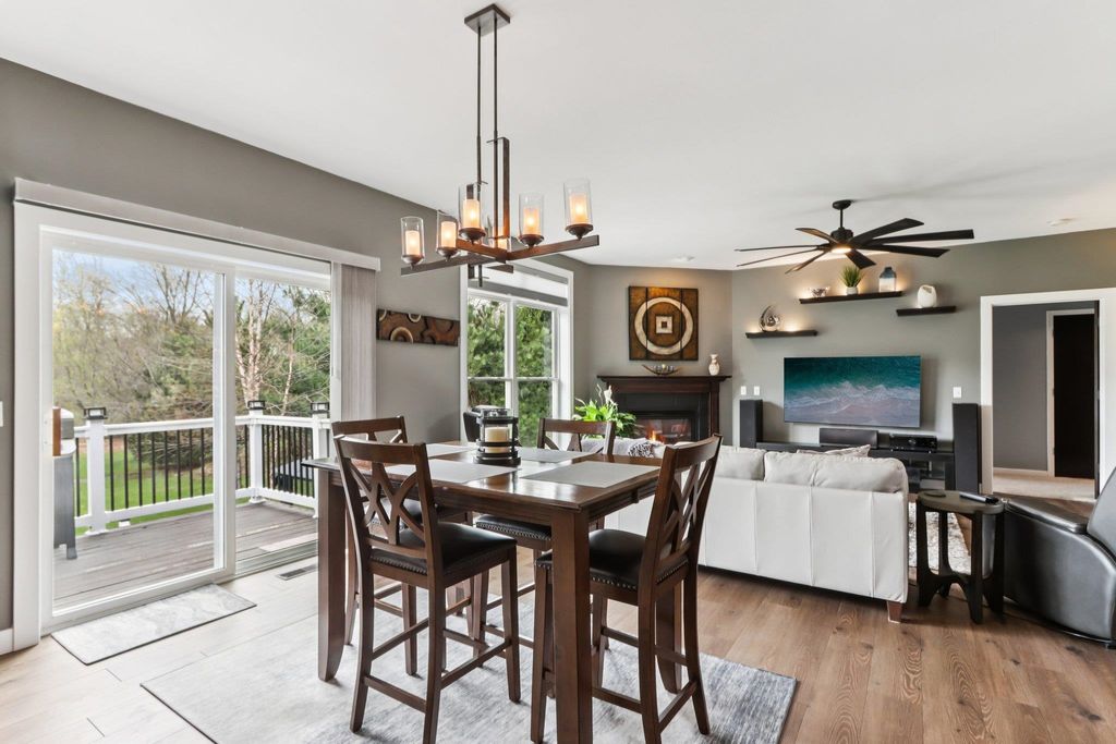 Showings begin 4/24. Beautifully updated ranch on nearly 3 scenic acres, with south end bordering Koshkonong Creek & just minutes from The Oaks Golf Course! This 4-bedroom, 2.5-bath home is perfect for entertaining. The fully remodeled main level features a stunning kitchen with quartz countertops, new cabinetry, stainless appliances & charming rustic barn door accent, plus a cozy living room with a gas fireplace. Convenient 1st floor laundry located just off the garage. Enjoy updated bathrooms, all-new LVP flooring, carpet, fresh paint, white woodwork, modern lighting, and ceiling fans throughout. The finished walkout lower level offers a spacious family room with a striking stone fireplace, rustic bar, private office/den with a window & brand-new half bath. Recent updates include new roof & gutters (2024) and refreshed landscaping. Relax outdoors in the screened-in gazebo or on the paver patio. A large 3-car garage & picturesque setting complete this must-see home! Ultimate UHP incl
