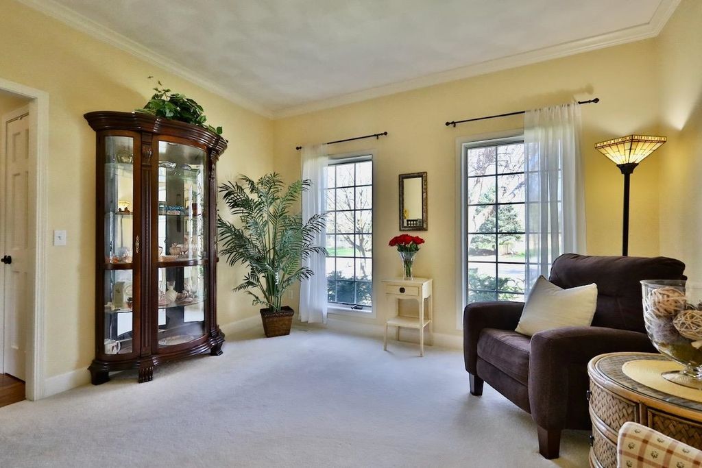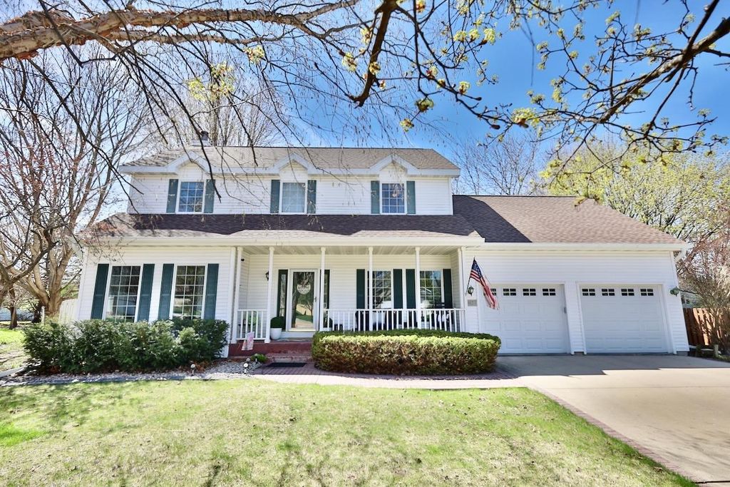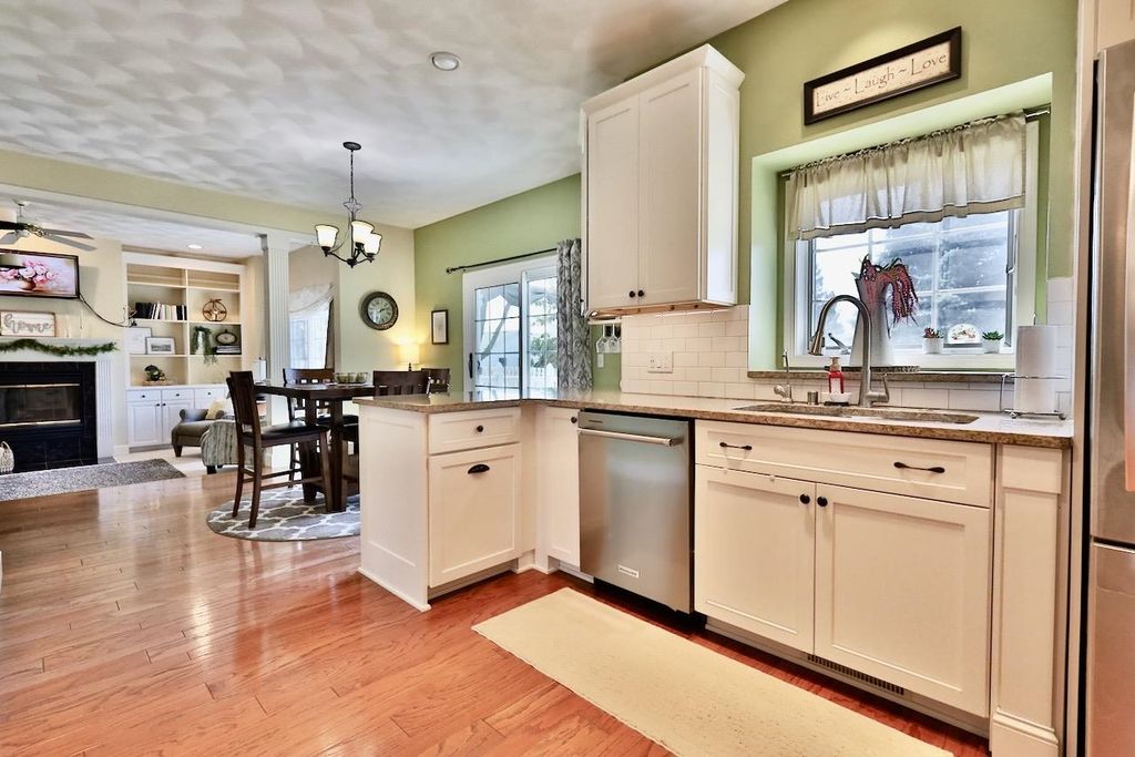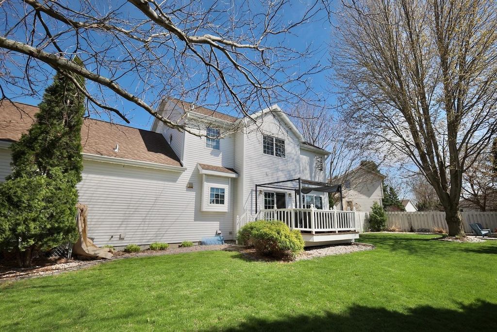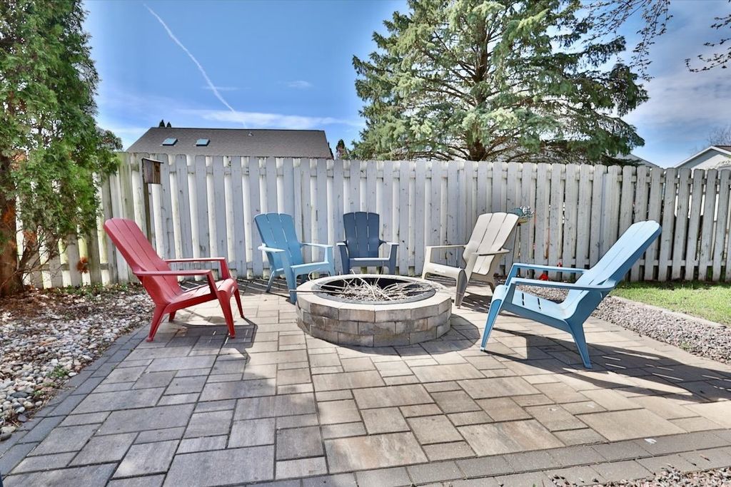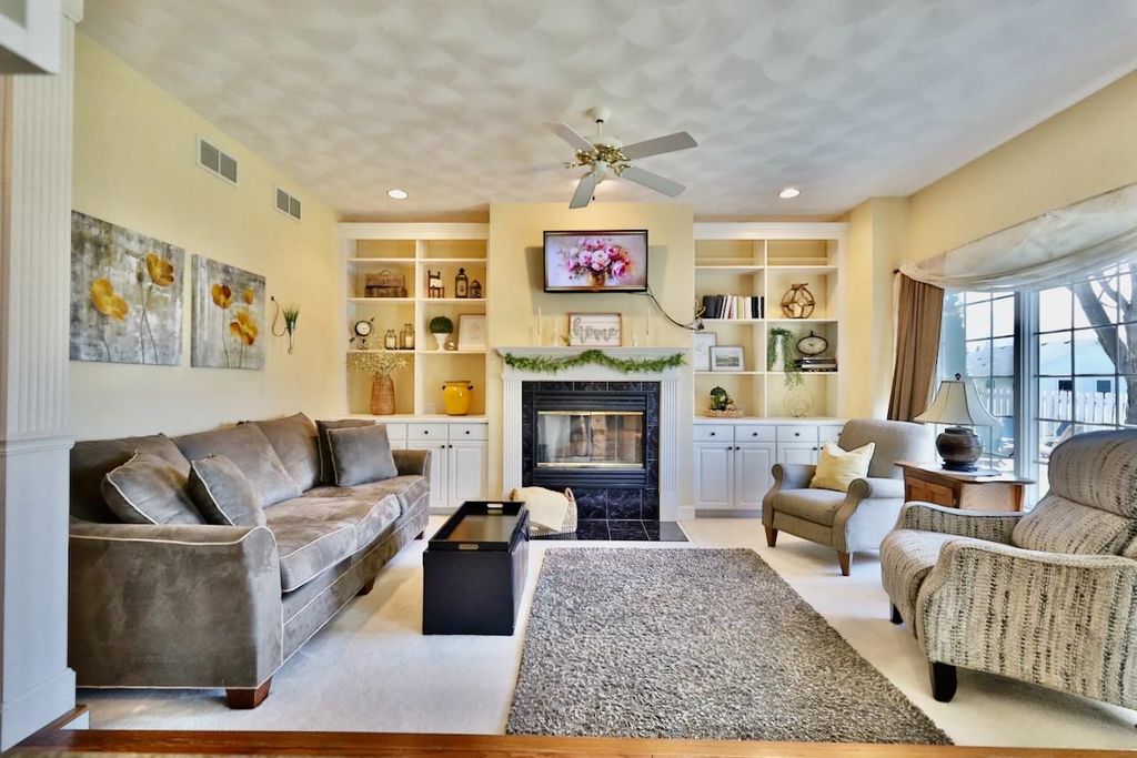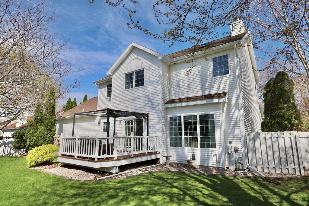 This rare Parade Home on a quiet cul-de-sac is move-in ready! This custom-built home offers 3 bedrooms, 3.5 baths, and a finished lower level. Enjoy a light-filled entry with a circular staircase and an open family room with a remodeled kitchen (2017). Features include hardwood floors, crown molding, 9-ft ceilings, built-in desk, and fireplace. The primary suite has a Jacuzzi tub and skylight; bedrooms 2 and 3 share a Jack-and-Jill bath. Lower level includes a family room, office, built-ins, and full bath. Relax in a private fenced in backyard with firepit. 2.5+ car garage. Updates: roof (2015), A/C (2021).