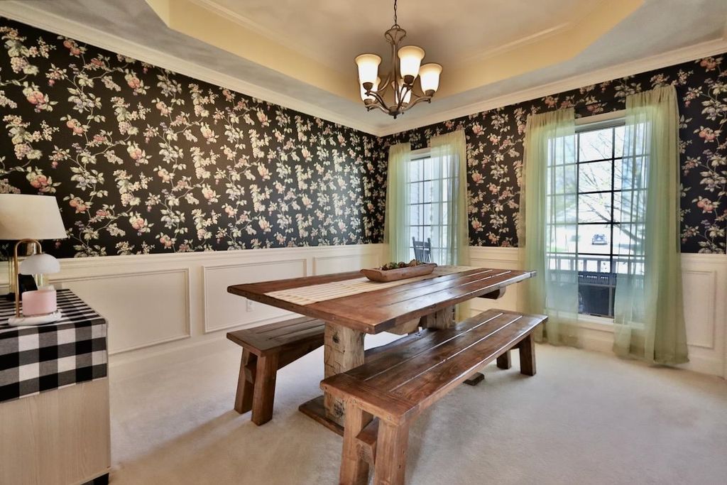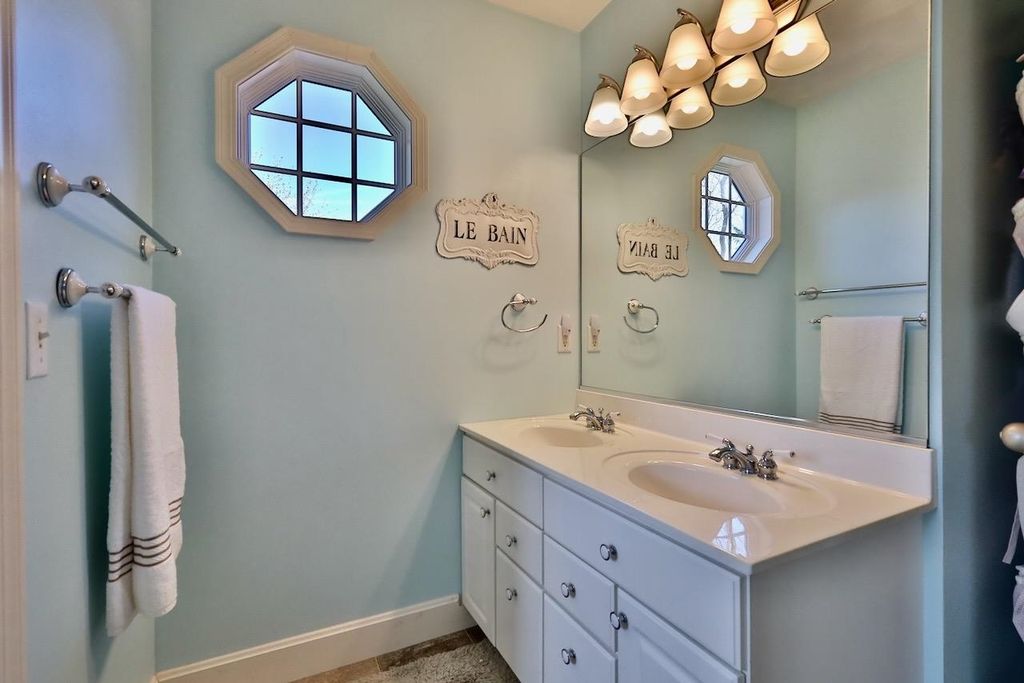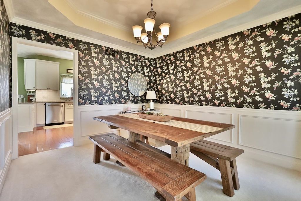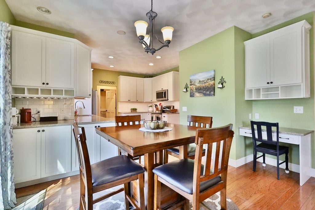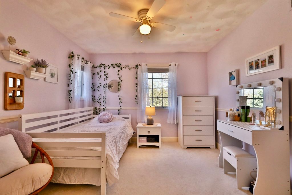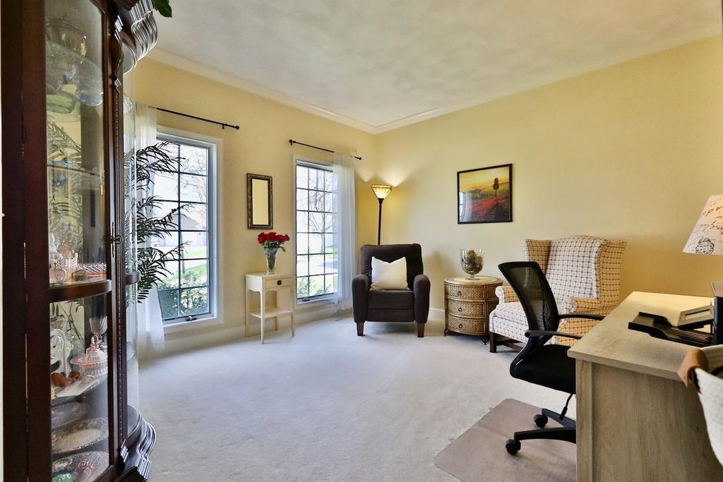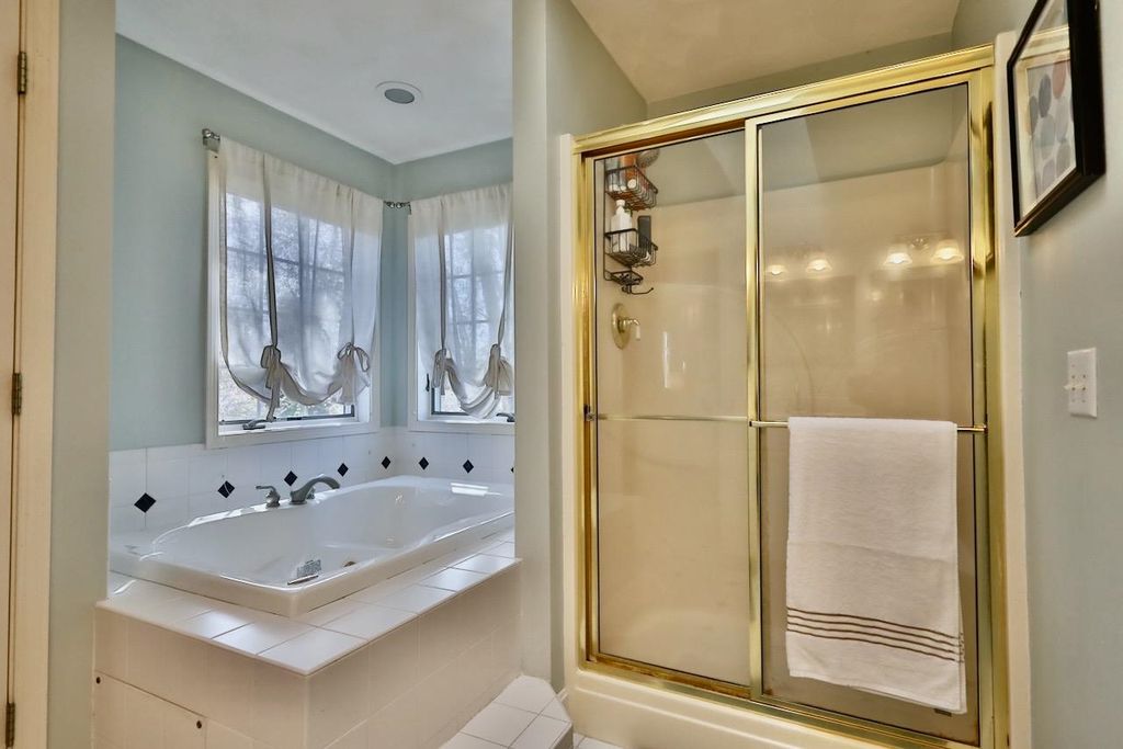 This rare Parade Home on a quiet cul-de-sac is move-in ready! This custom-built home offers 3 bedrooms, 3.5 baths, and a finished lower level. Enjoy a light-filled entry with a circular staircase and an open family room with a remodeled kitchen (2017). Features include hardwood floors, crown molding, 9-ft ceilings, built-in desk, and fireplace. The primary suite has a Jacuzzi tub and skylight; bedrooms 2 and 3 share a Jack-and-Jill bath. Lower level includes a family room, office, built-ins, and full bath. Relax in a private fenced in backyard with firepit. 2.5+ car garage. Updates: roof (2015), A/C (2021).
