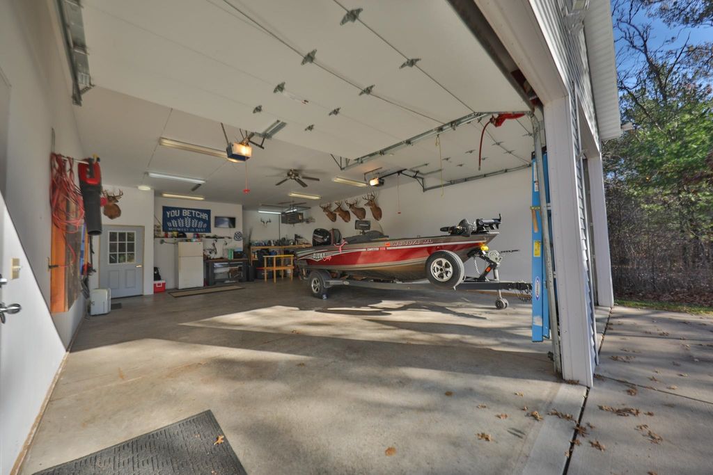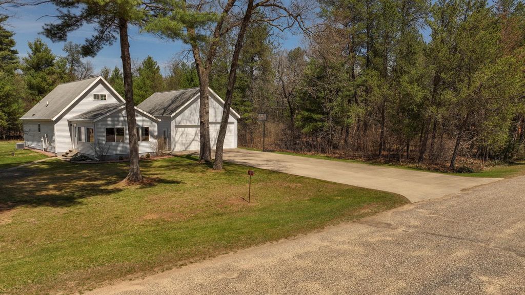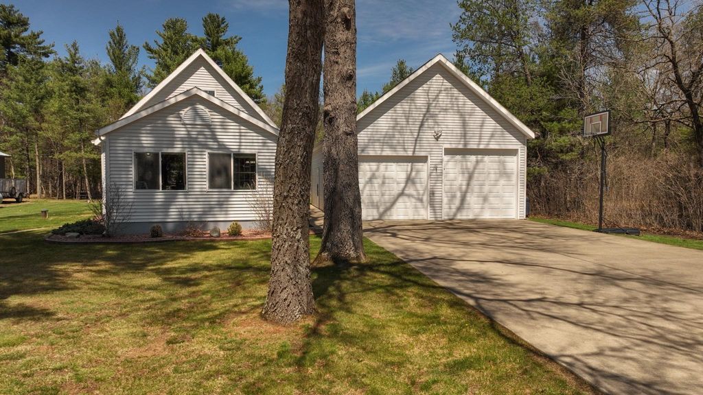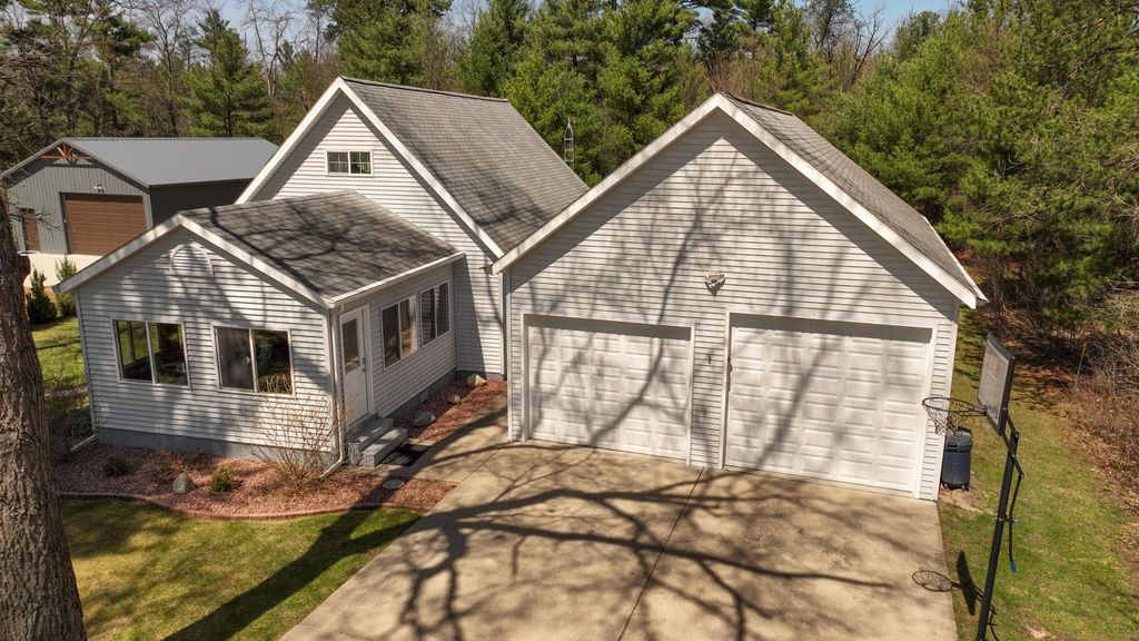 Charming custom-built contemporary home just ½ mile from Castle Rock Lake and steps from Northern Bay Golf Resort! Enjoy deeded access to a sandy beach, boat launch, and picnic area"”perfect for year-round recreation. Nearly 1,500 sq ft with 4 bedrooms, 1 bath, and an airy open-concept layout featuring bamboo hardwood floors, granite countertops, and cathedral ceilings. Bright 3-season room and spiral staircase to upper-level bedrooms. Heated 24x40 insulated garage with loft for storage or finish potential. Peaceful wooded setting rich with wildlife, only 30 minutes from Wisconsin Dells. We'll help you make every weekend feel like vacation.