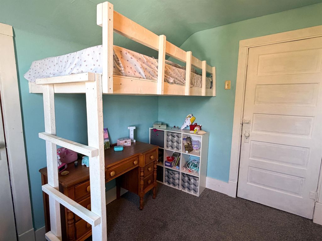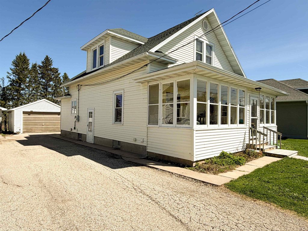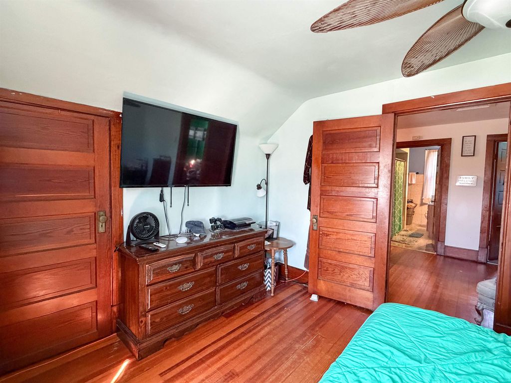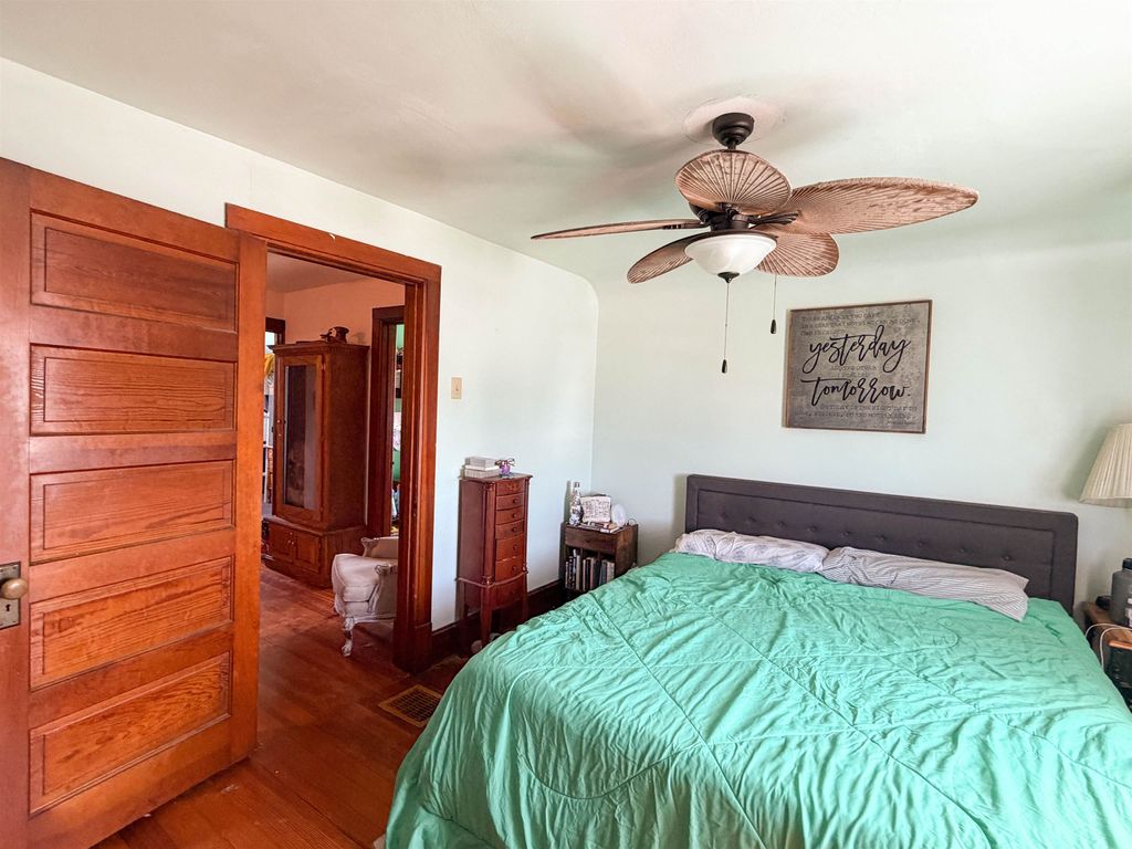 Charming 4-bedroom, 1.5 bath home with plenty of character! This property features hardwood floors and stairs. A bright and spacious enclosed porch perfect for relaxing. Step outside to a spacious backyard featuring a chicken coop, raised garden beds, apple and cherry trees and more. Enjoy the convenience of being within walking distance to a nearby park. Updates: Carpet 2024,Tankless Water Heater 2025, Water softener 2025, Refrigerator 2023, Range/oven 2023 sq.ftg. is approximate. Buyer to verify if important. 4th bedroom is currently being used as a laundry room and does not have a closet. 2nd bedroom upstairs does not have a heat register.