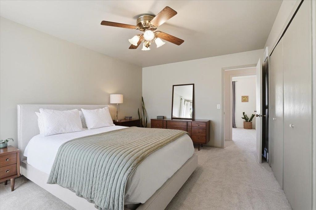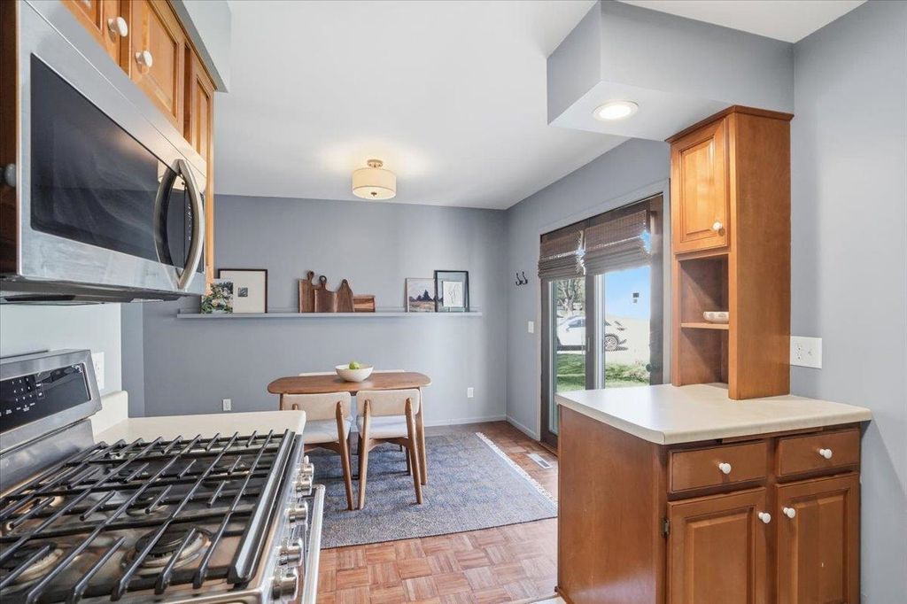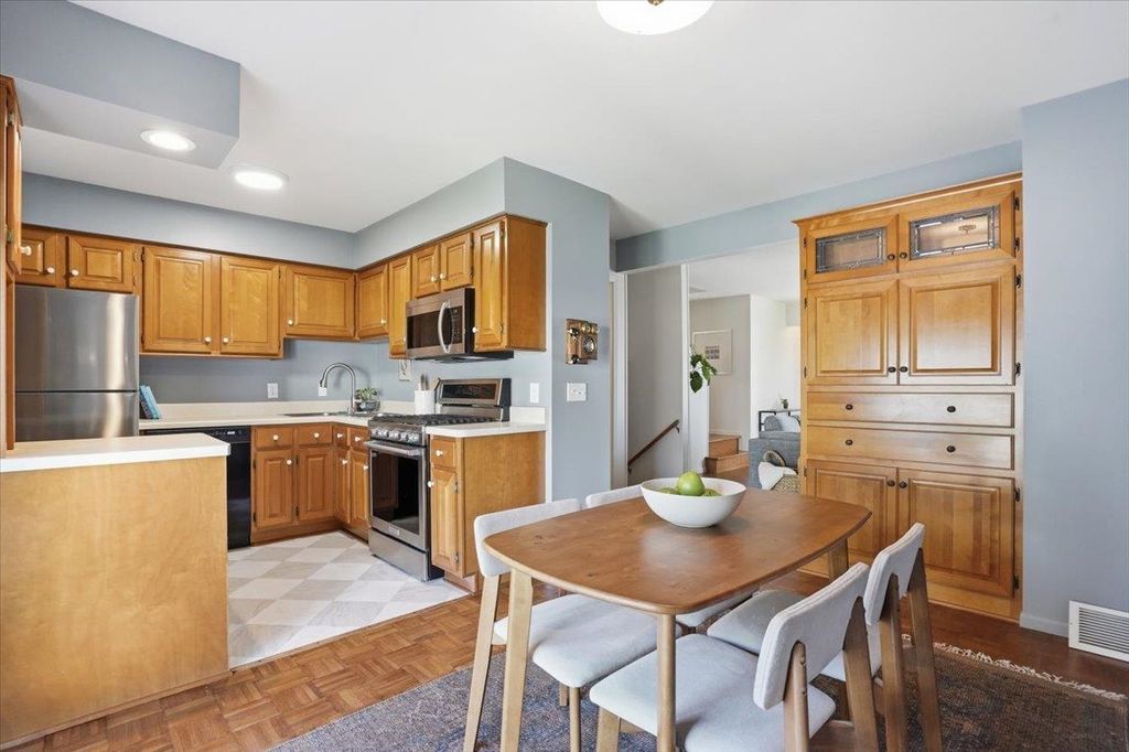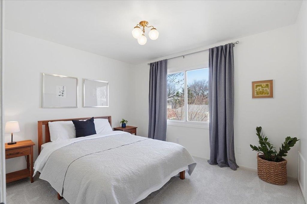Showings start 4/22. This beautifully maintained townhome with tons of natural light could be yours! Original parquet floors throughout the main floor welcome you into the spacious living room. Open kitchen, dining, and living room are great for entertaining guests. Sliding door from the kitchen allows easy access to the private 1-car garage or even to step out and enjoy a coffee out back. New paint and carpeting throughout the home. Spacious bedrooms with large closets. This home is just minutes from groceries, restaurants, the Capital City bike path, and less than a 10-minute drive from downtown. All the updating is done, and this home is ready for you to move in. Come see it today and make this place your new home!