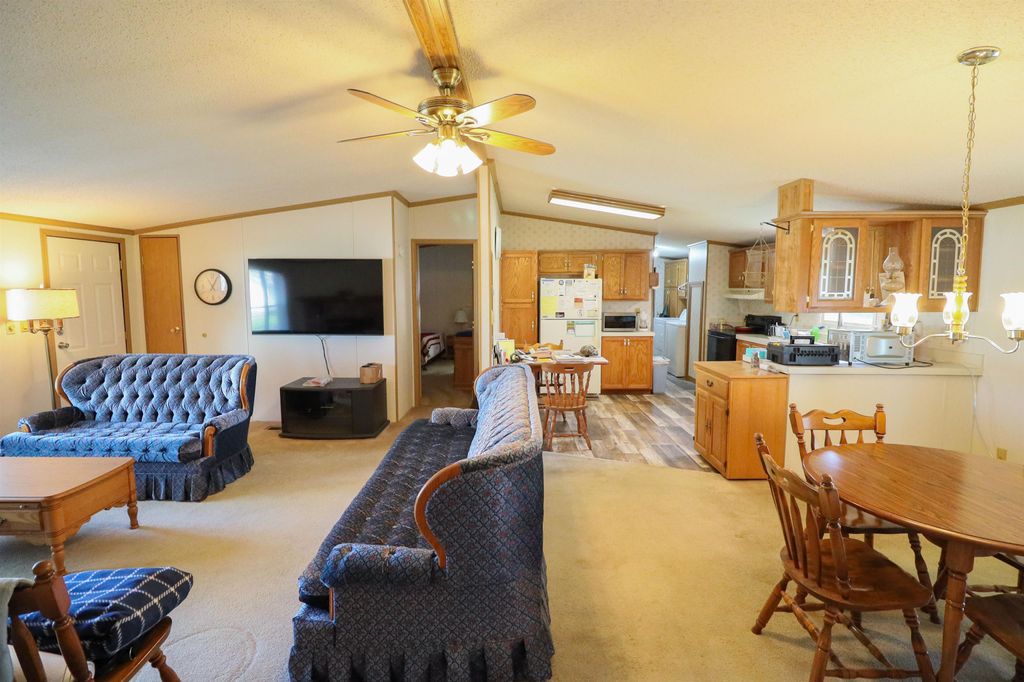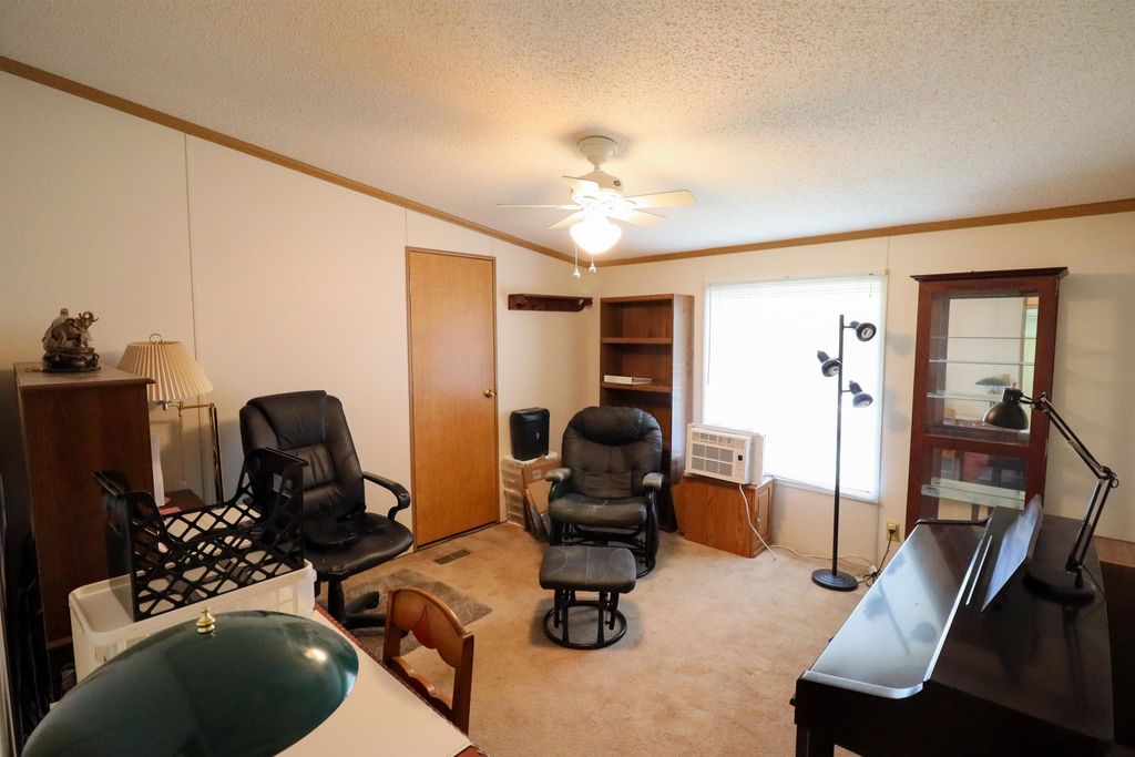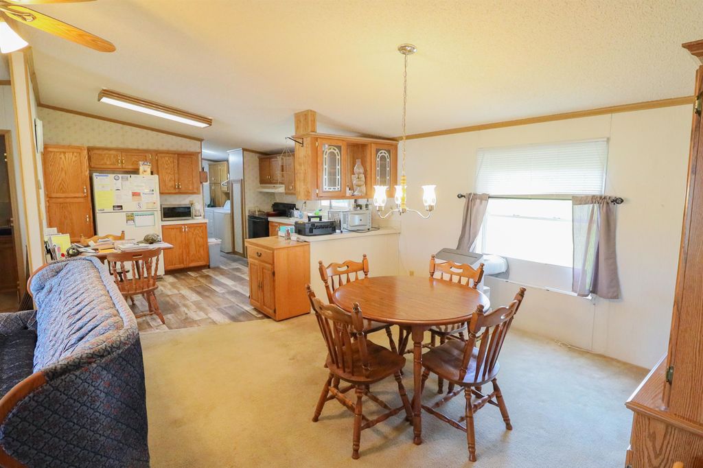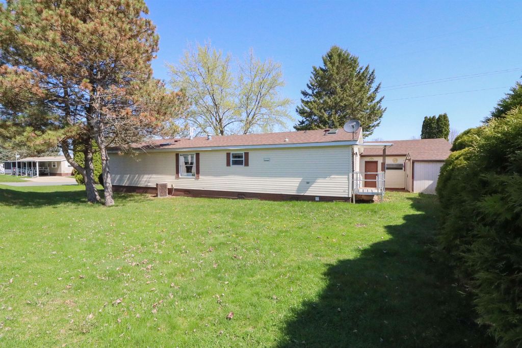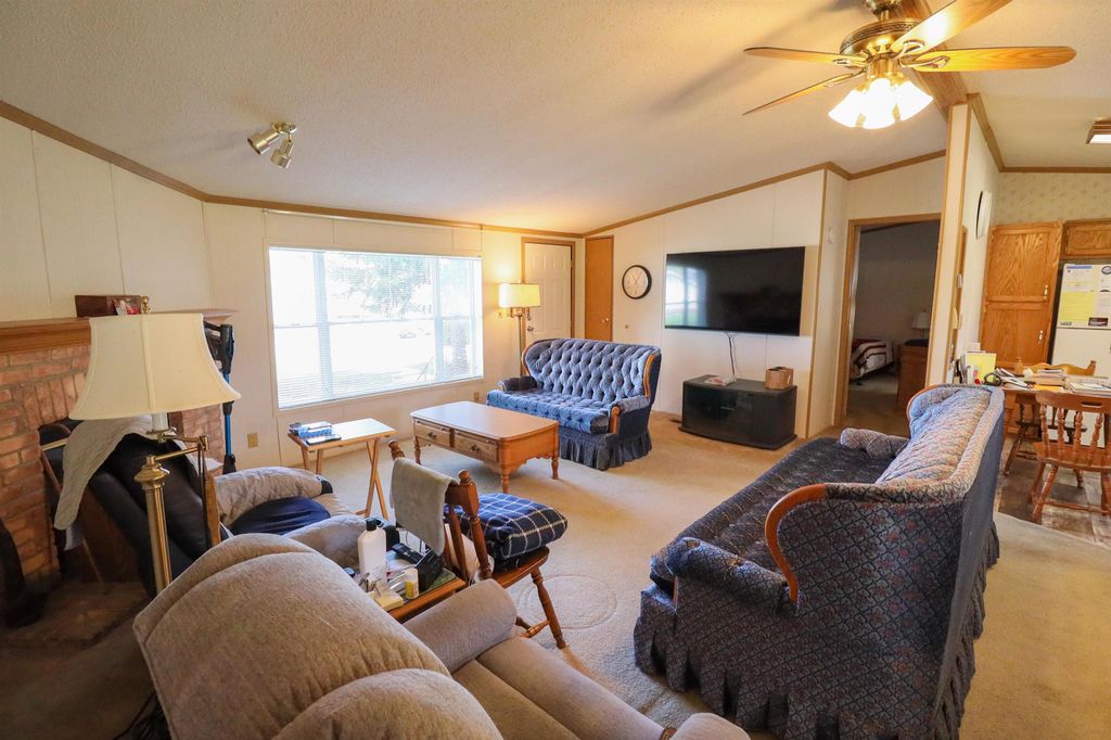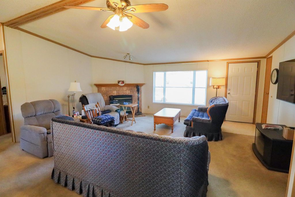 Spacious and inviting double-wide mobile home in Green Meadows Mobile Home Park, offering comfort and privacy! This well-designed home features 3 generously sized bedrooms, including a primary suite with its own private bath and walk-in shower. The cozy living area is anchored by a natural fireplace with a blower"”perfect for staying warm on cooler days. You'll also appreciate the thoughtful touches throughout, including ceiling fans and skylights in the bathrooms that bring in great natural light. Outside, the property continues to impress with an approximately 22x25 garage and a beautiful corner lot tucked at the rear of the park. Enjoy the peace and quiet of this low-traffic, private setting"”ideal for relaxing and unwinding. A wonderful place to call home! This is a leased park , lot rent applies