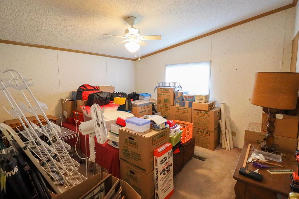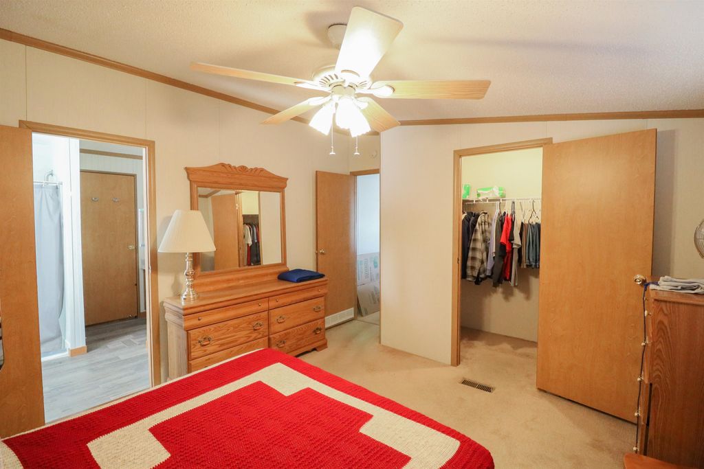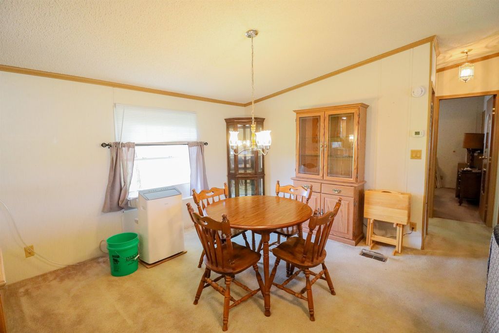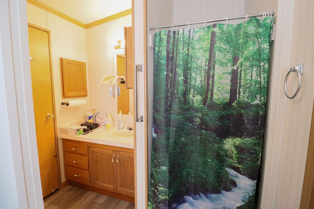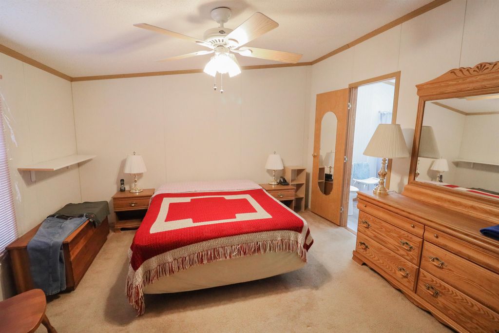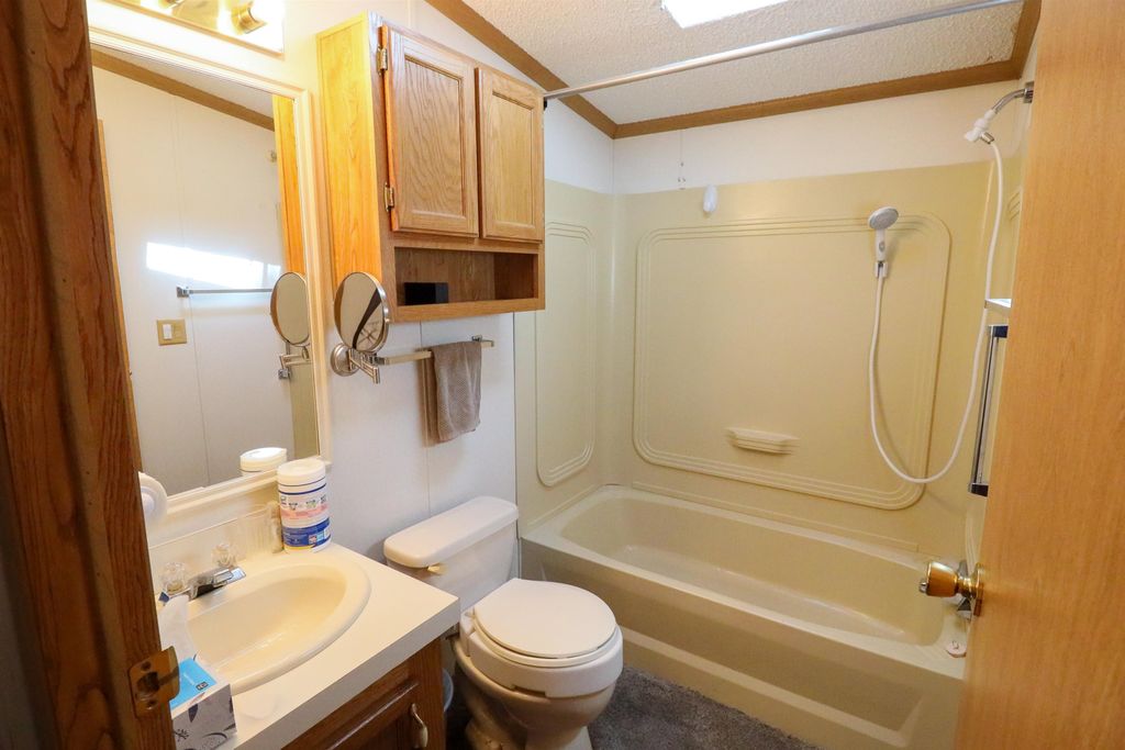 Spacious and inviting double-wide mobile home in Green Meadows Mobile Home Park, offering comfort and privacy! This well-designed home features 3 generously sized bedrooms, including a primary suite with its own private bath and walk-in shower. The cozy living area is anchored by a natural fireplace with a blower"”perfect for staying warm on cooler days. You'll also appreciate the thoughtful touches throughout, including ceiling fans and skylights in the bathrooms that bring in great natural light. Outside, the property continues to impress with an approximately 22x25 garage and a beautiful corner lot tucked at the rear of the park. Enjoy the peace and quiet of this low-traffic, private setting"”ideal for relaxing and unwinding. A wonderful place to call home! This is a leased park , lot rent applies