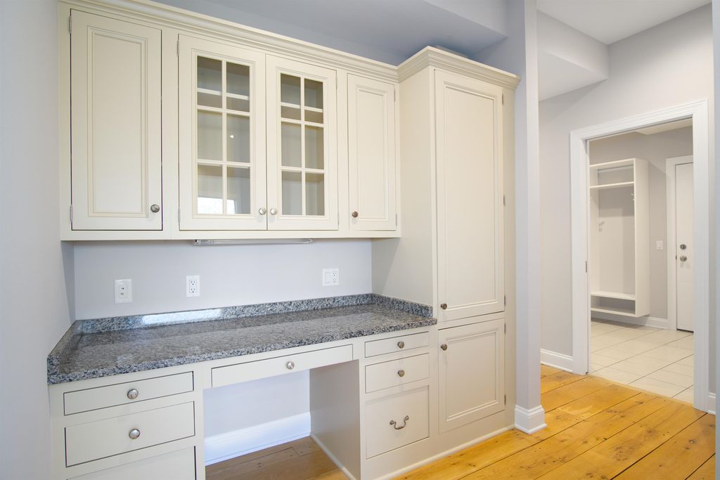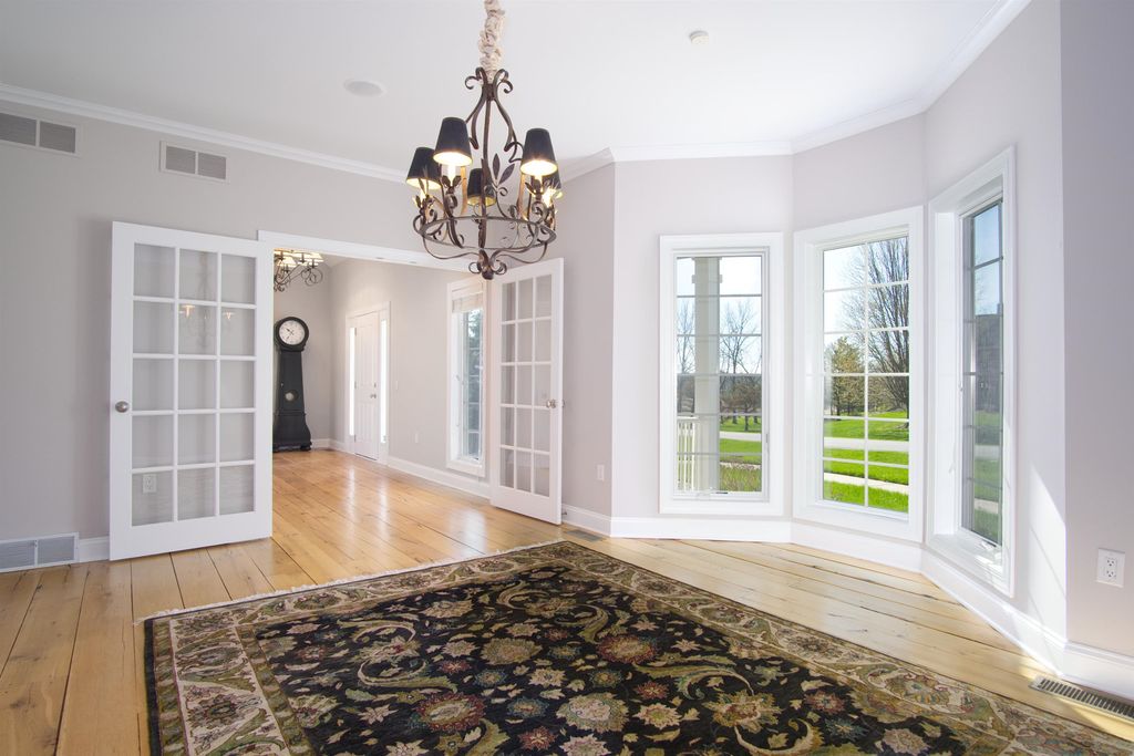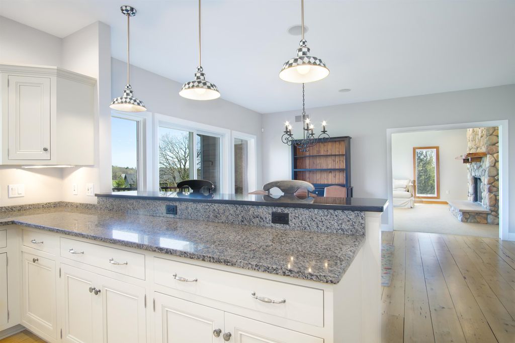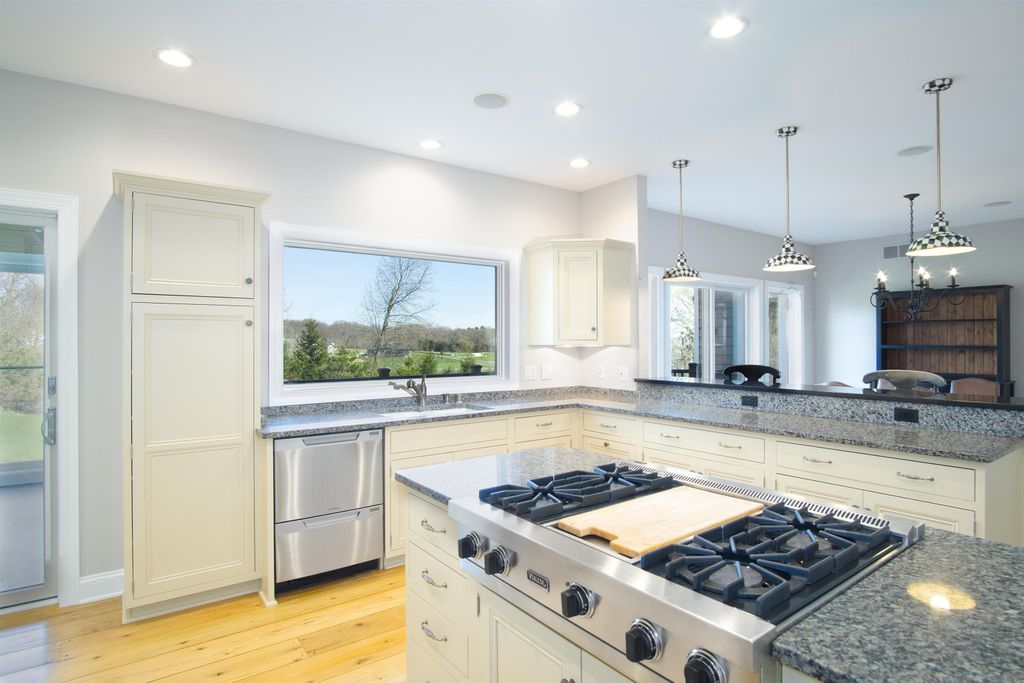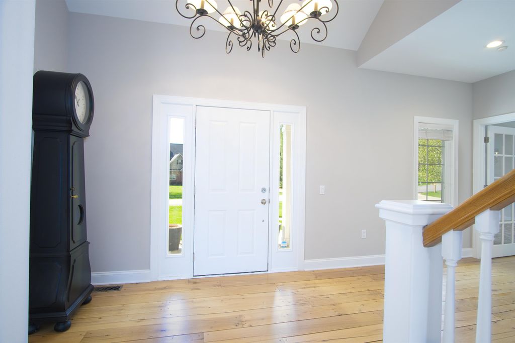 This elegant 5 bedroom home exudes warmth from the moment you pull into the driveway. The covered front porch welcomes you through the front door where you're greeted by warm reclaimed hickory floors and a stunning open staircase. The kitchen is a chef's delight featuring high end appliances and ample work space and storage. The great room